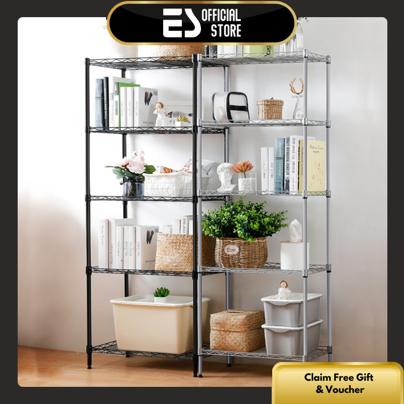 ES Rak penyimpanan 5 Tingkat Hitam Silver Rak Dapur Microwave Kamar Rak Serba Serbi Rak Sepatu Lima