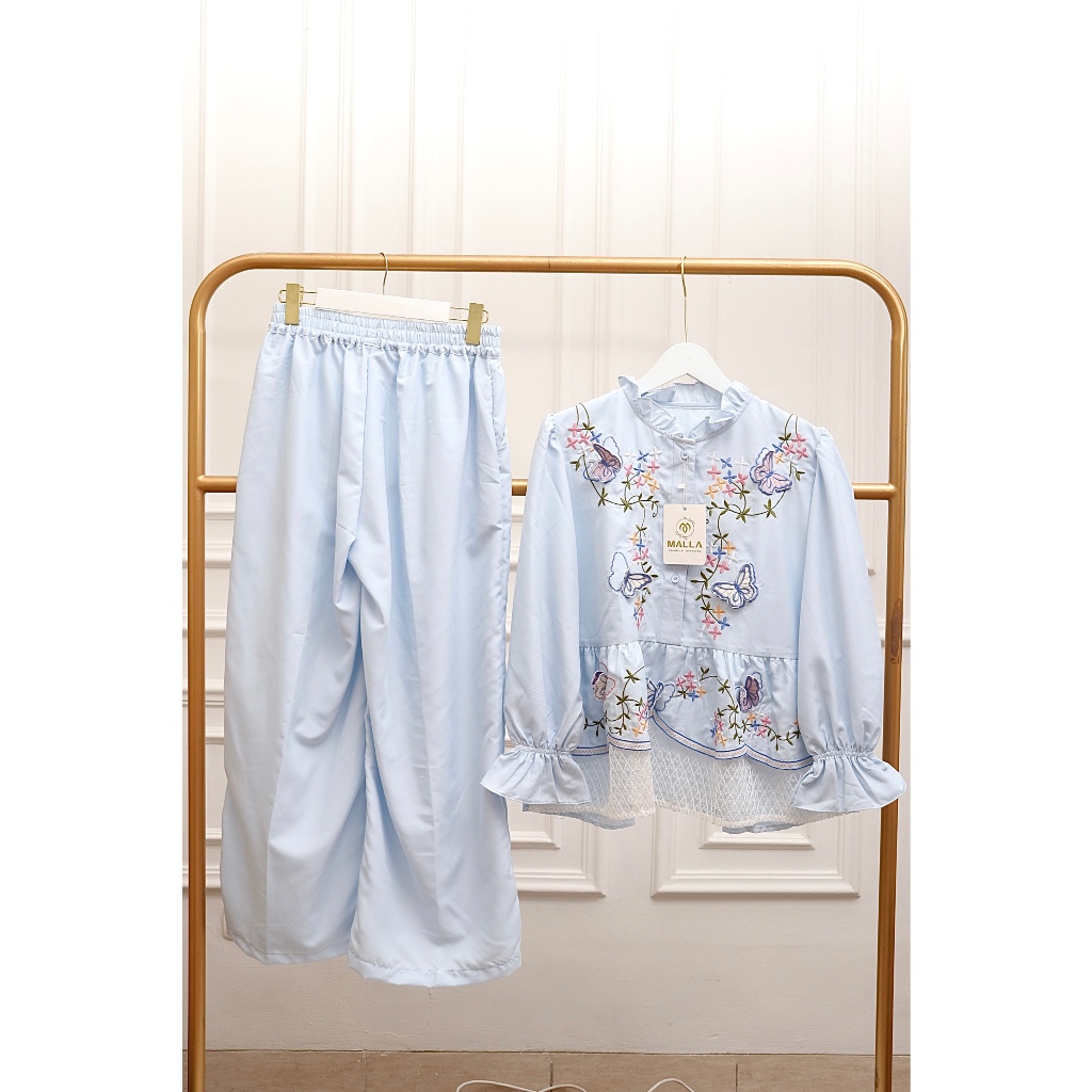 MallaOfficial—Madamemalla Grisa PO 2202 Setelan Celana Flowy Bordir Fashion Muslim 250326 AN