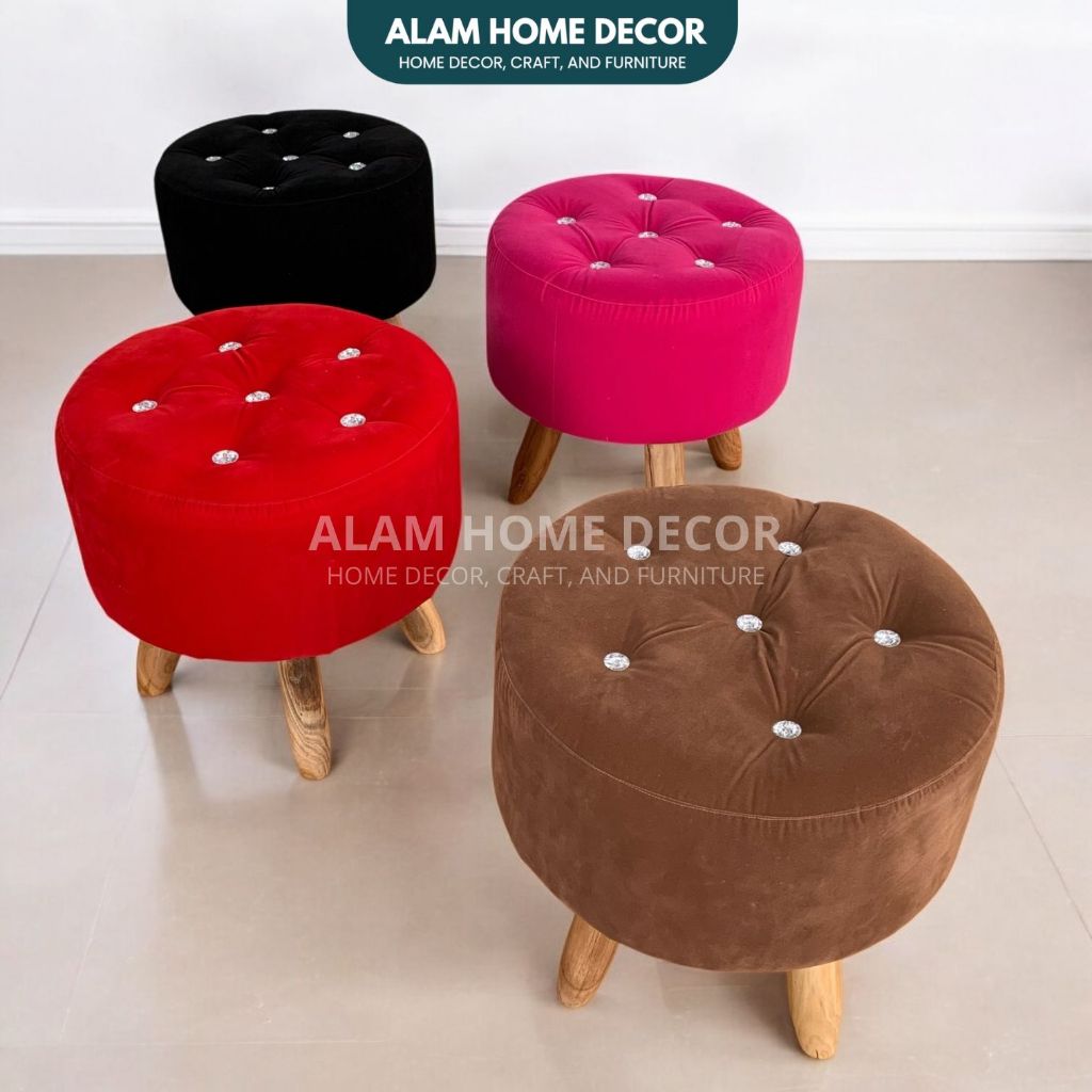 Sofa Stool Kancing Bulat Ruang Tamu Minimalis Kursi Stool Bangku