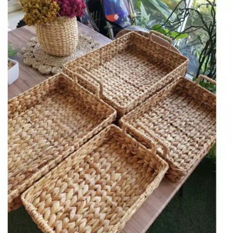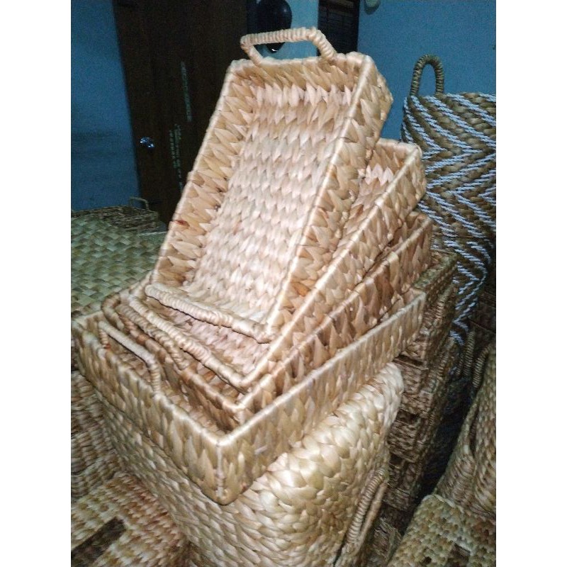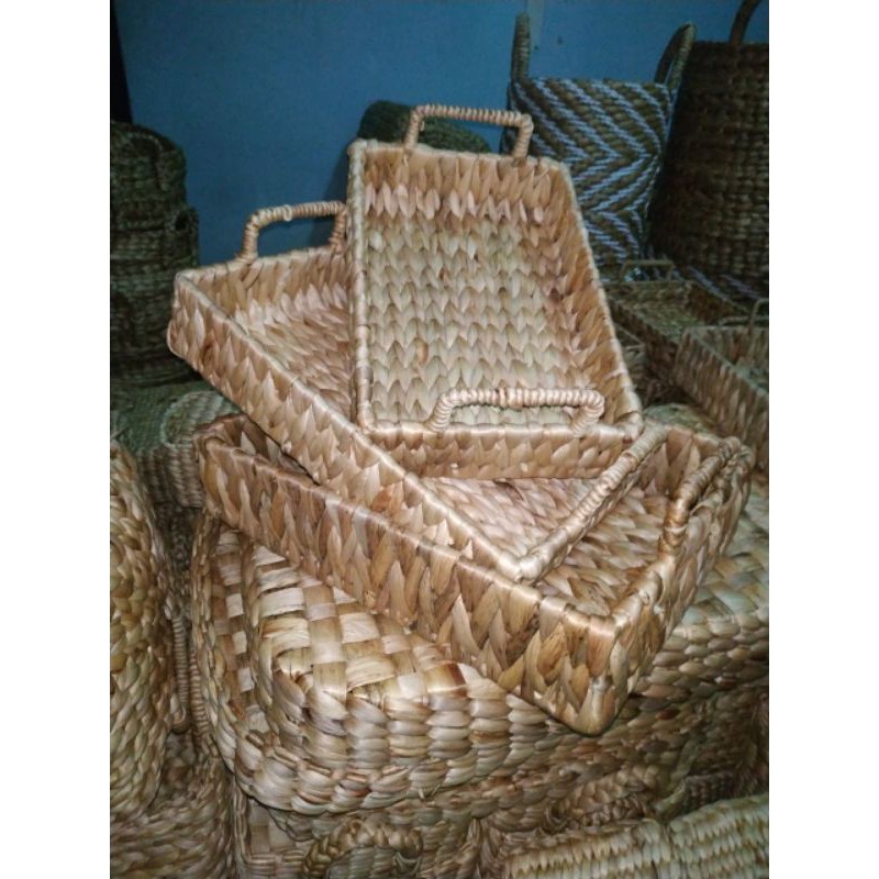 Tray rangka bahan eceng gondok kotak (rangka besi) / Keranjang Baki Enceng