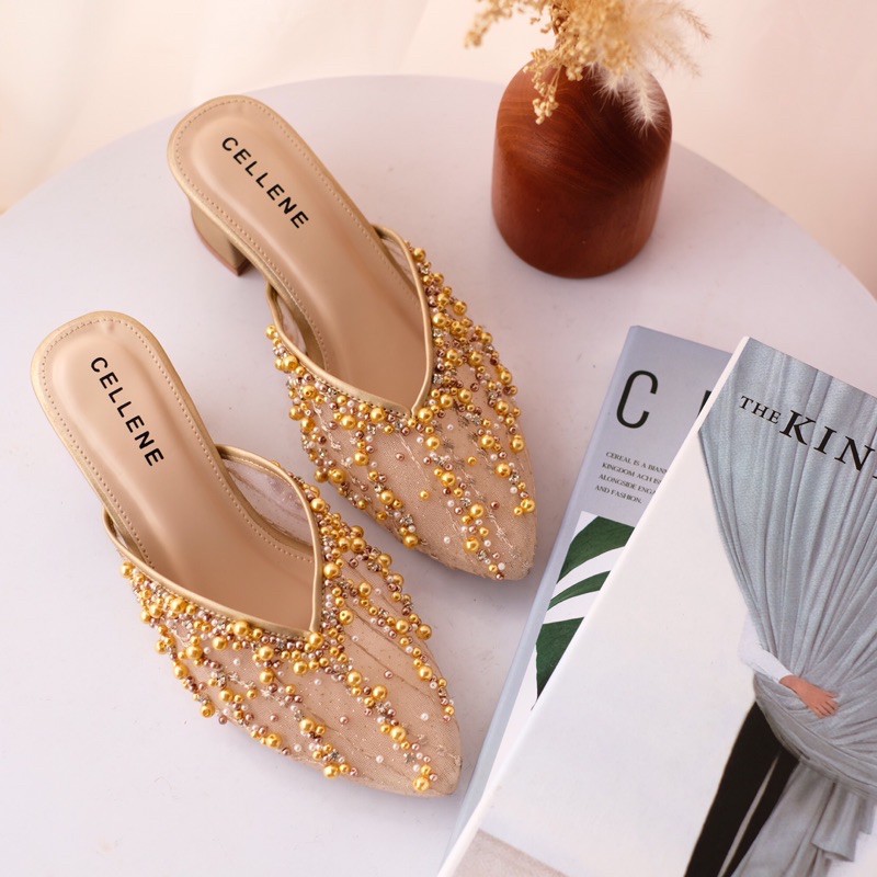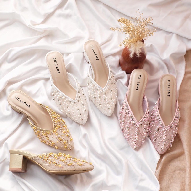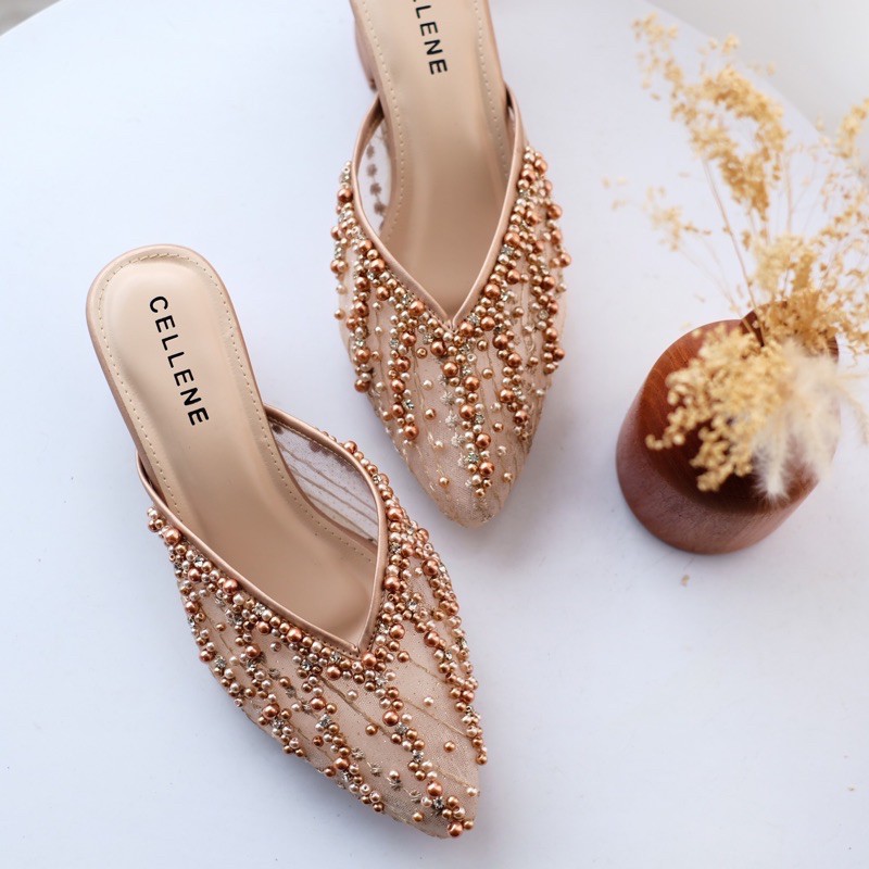 CELLENE IRISH BEADS wedding shoes heels 5cm, sepatu wanita pesta pernikahan,heels pengantin berpayet