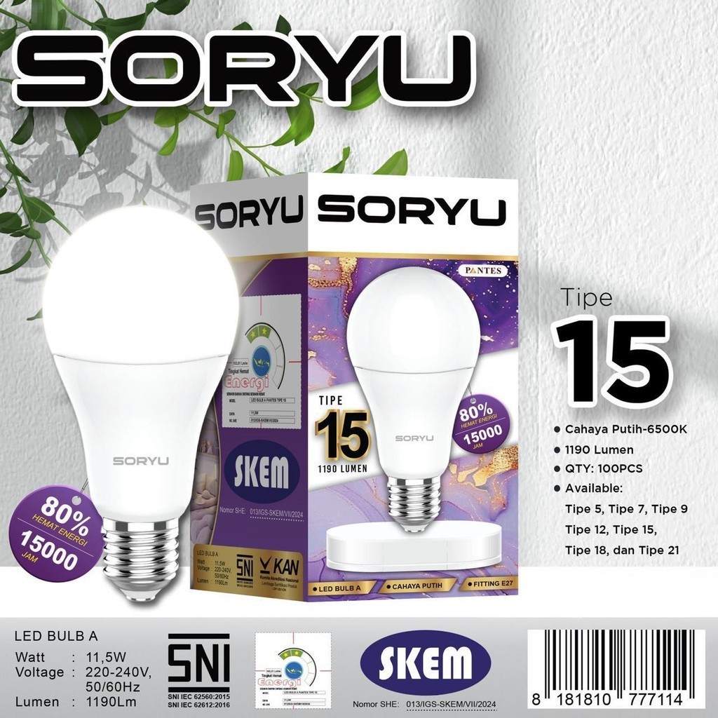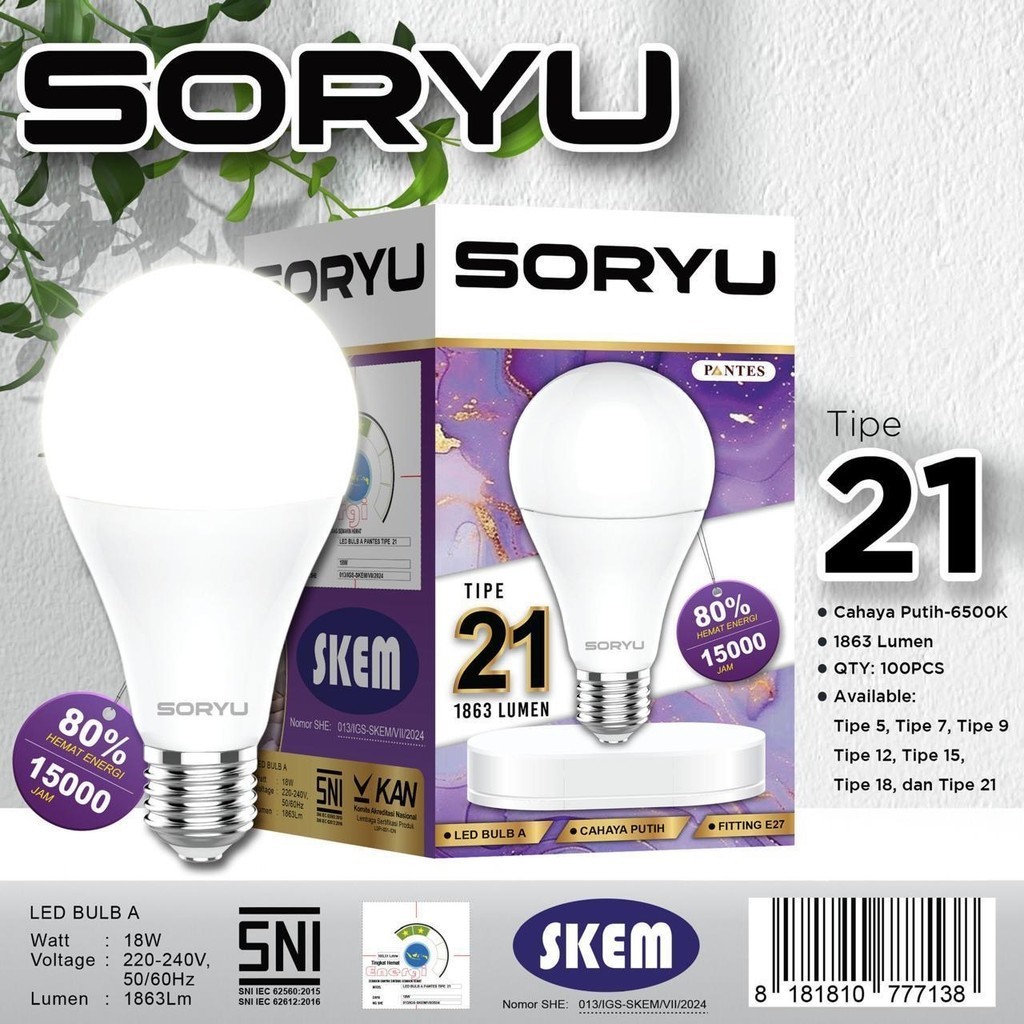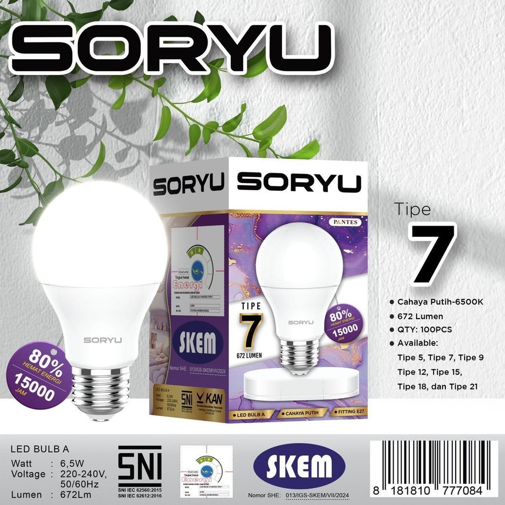 Lampu LED Bulb A / Bohlam Putih Soryu Tipe 5/7/9/12/15/18/21