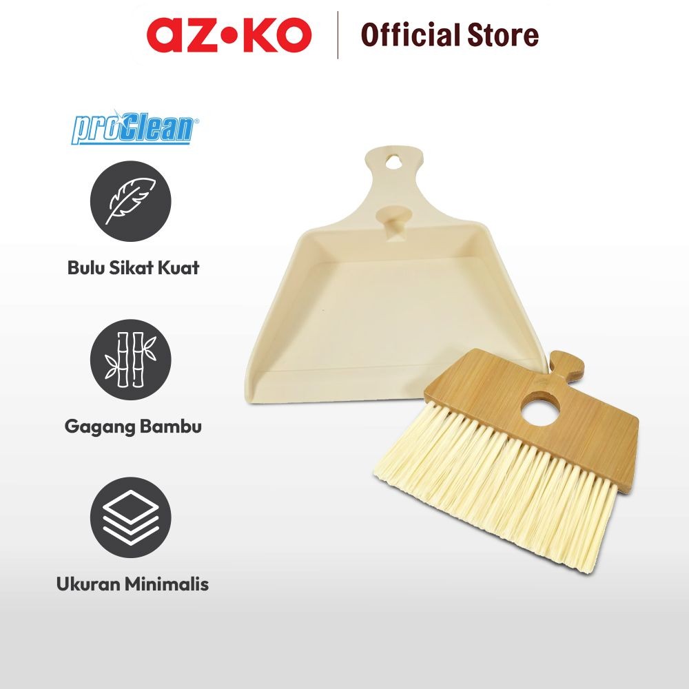 AZKO Proclean Set Sapu Mini & Pengki 1612 - Cokelat Floor Broom Set Sapu Dan Serokan Sapu Serbaguna Serok Lantai Dust Pan