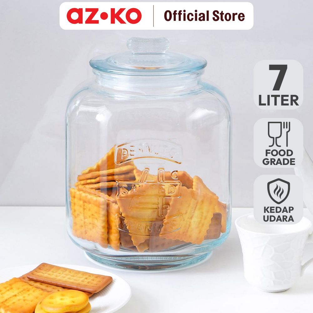 AZKO Picas 7 ltr Stoples Kaca Transparan Jar Tempat Simpan Snack Dan Permen Setoples Toples Beling Serbaguna Perlengkapan Dapur Wadah Makanan