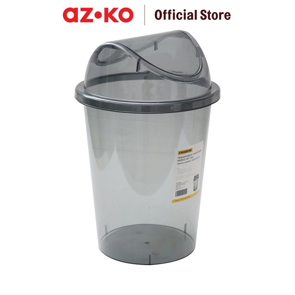 AZKO Krisbow 20 ltr Tempat Sampah Transparan - Abu-Abu Smoke Tong Sampah Wadah Pembuangan Alat Kebersihan Trash Bin