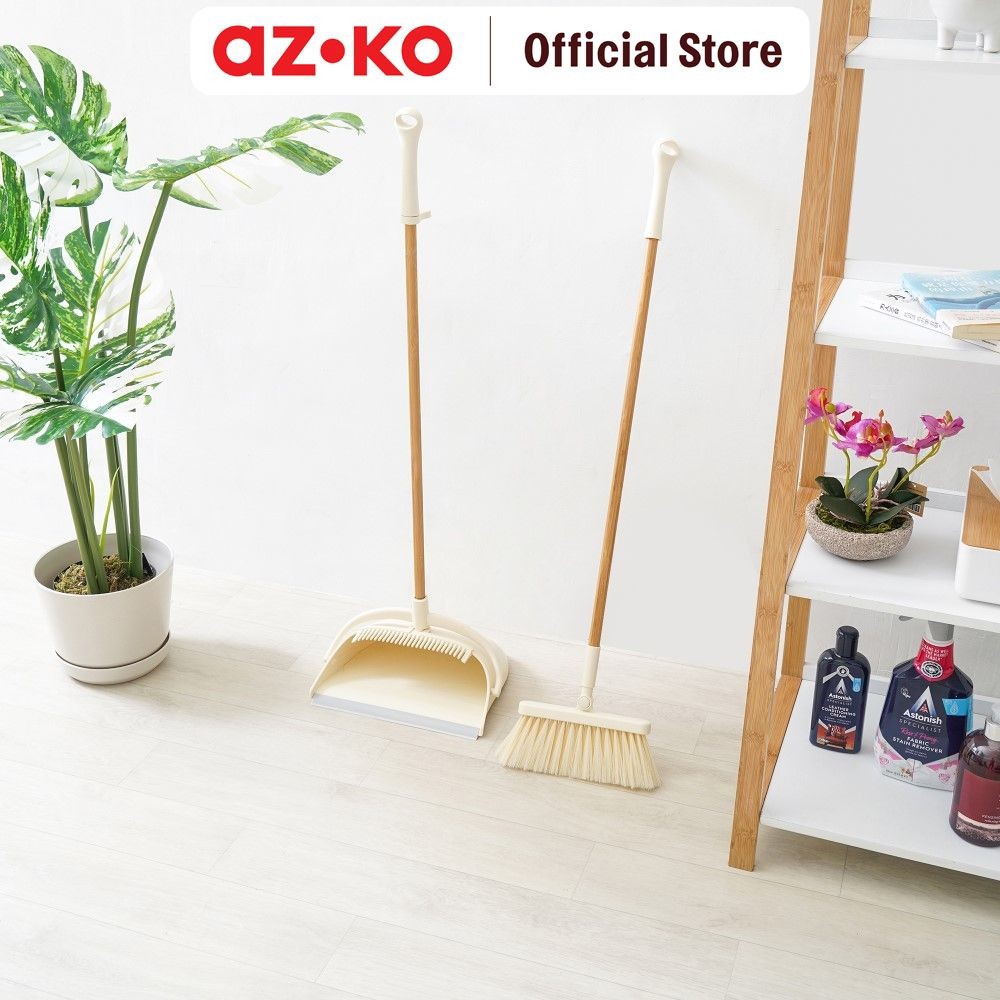 AZKO Proclean Set Sapu Dan Pengki - Krem Beige/Cokelat Floor Cleaner Set Sapu Dan Serokan Lantai Broom And Dust Pan Alat Kebersihan Cleaning Tool
