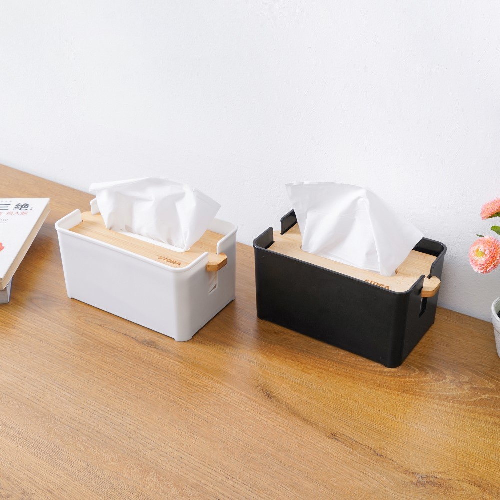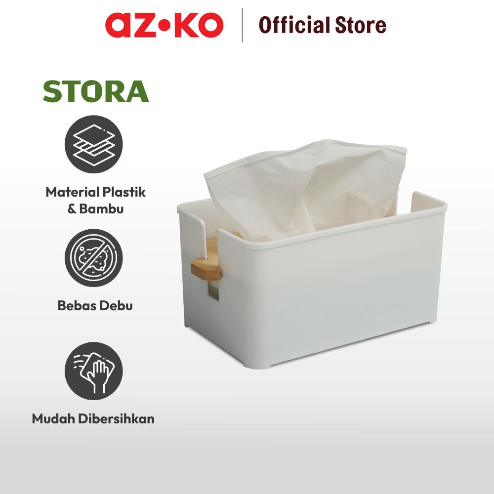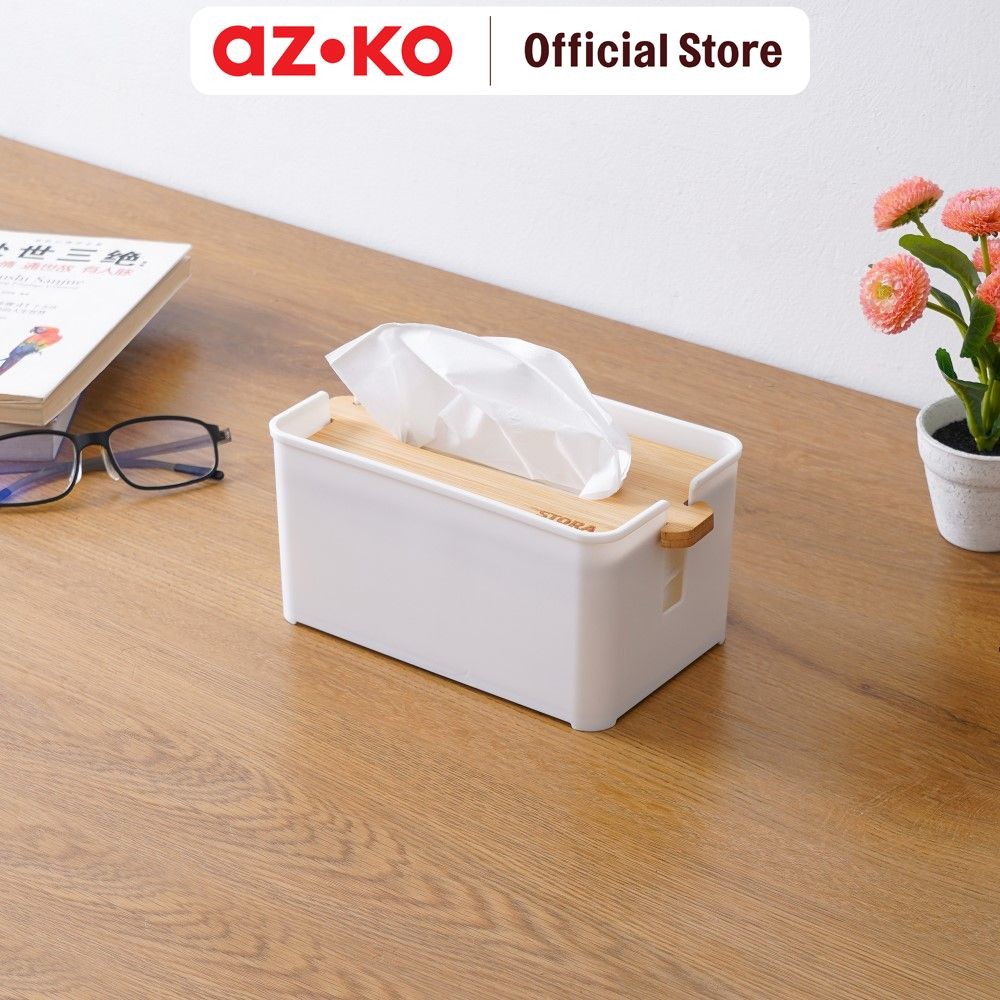 AZKO Stora Kotak Tisu Dengan Tutup Bambu Adjustable Tissue Box Holder Tempat Tisu Aesthetic Wadah Penyimpanan Tisyu Perlengkapan Rumah