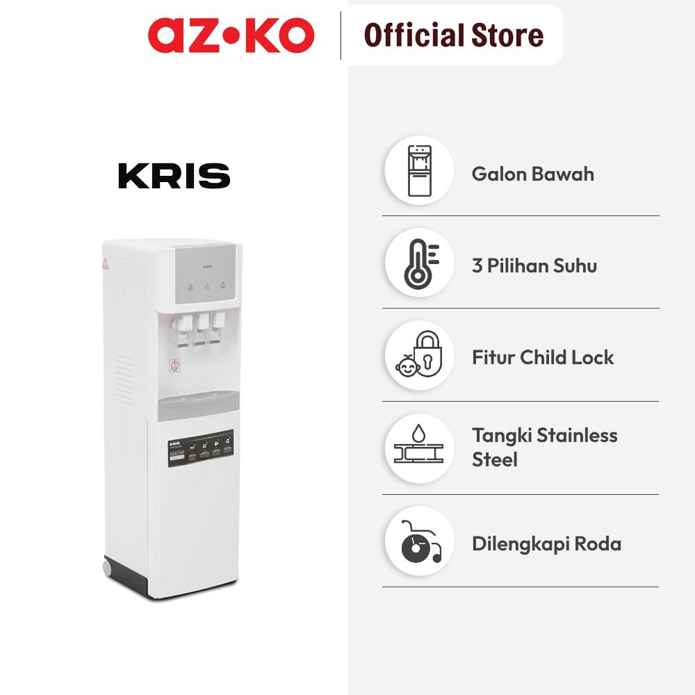AZKO Kris Dispenser Air Bottom Loading Thermoelectric Cooling Dengan Roda - Putih Dispenser Galon Bawah Praktis Dispenser Air Panas Dingin Dispenser Child Lock Aman Dispenser Air Rumah Kantor
