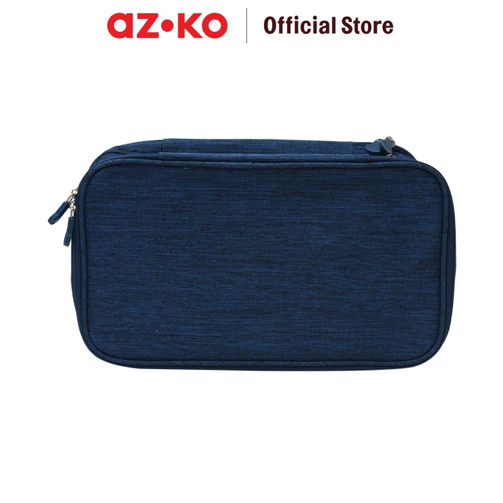 AZKO Passport Tas Organizer 3 Kompartemen - Biru Navy Organizer Bag Set Perlengkapan Traveling Tas Serbaguna Toiletries Pouch