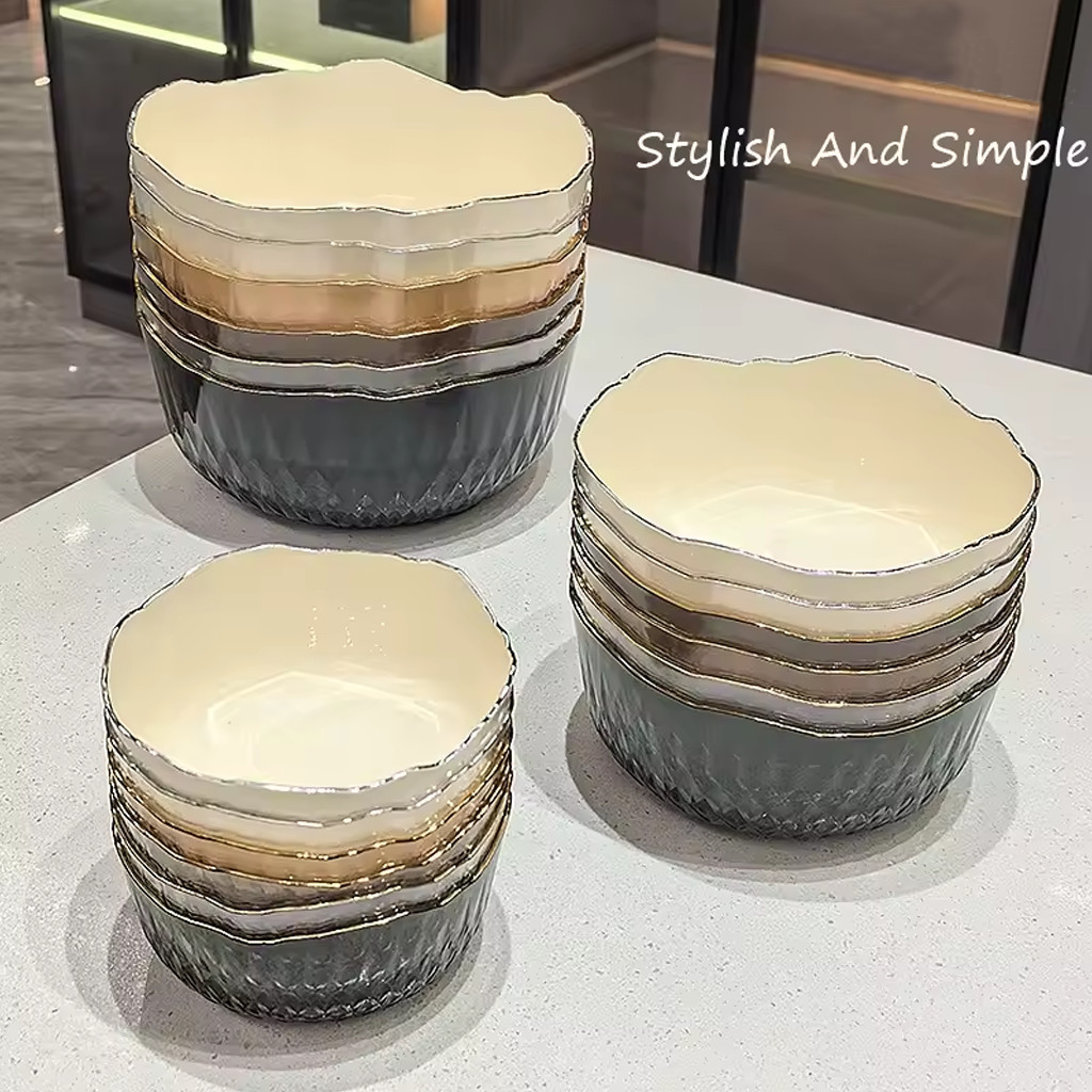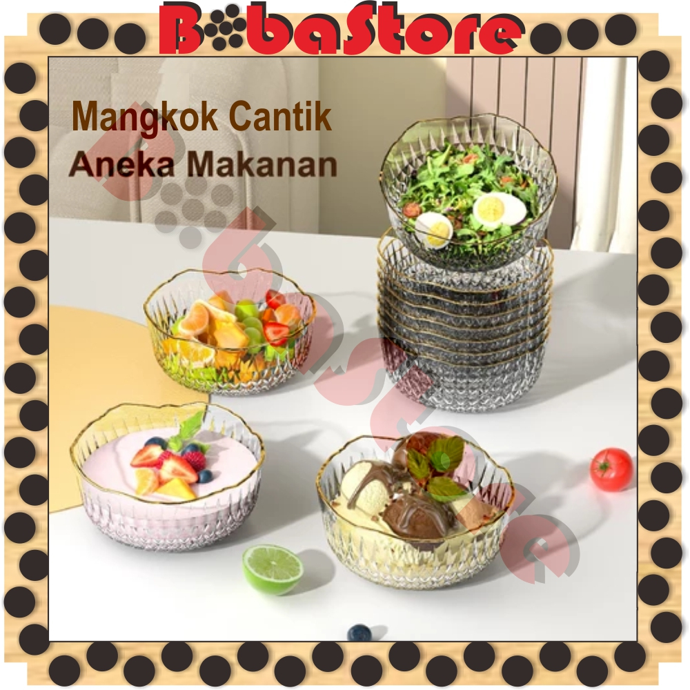 BOBASTORE Mangkok Diamond Motif Ombak Transparan Aesthetic - Transparan Bowl List Gold Transparent Mangkuk Salad Sayur List Emas Mangkok Salad Buah Transparan Estetik Serbaguna Mangkok Plastik Motif Bunga Bahan Plastic R1431