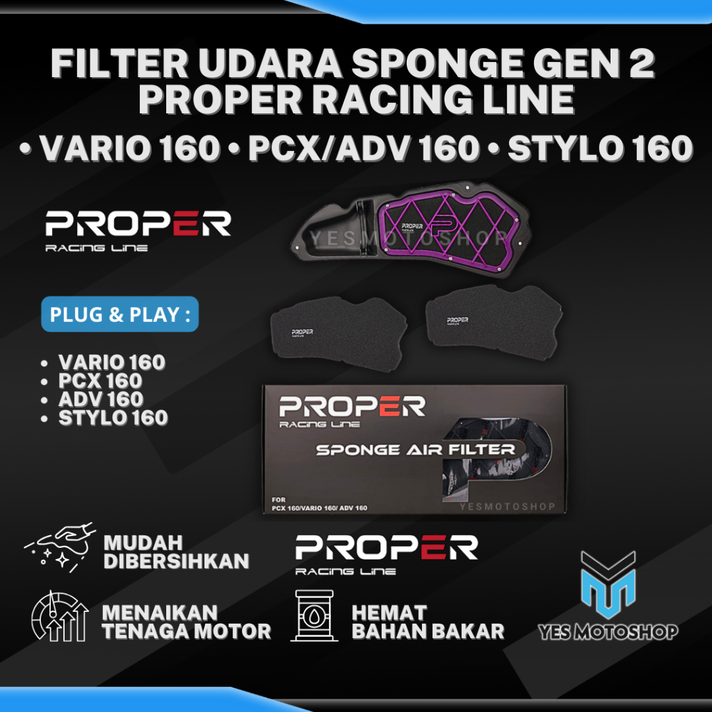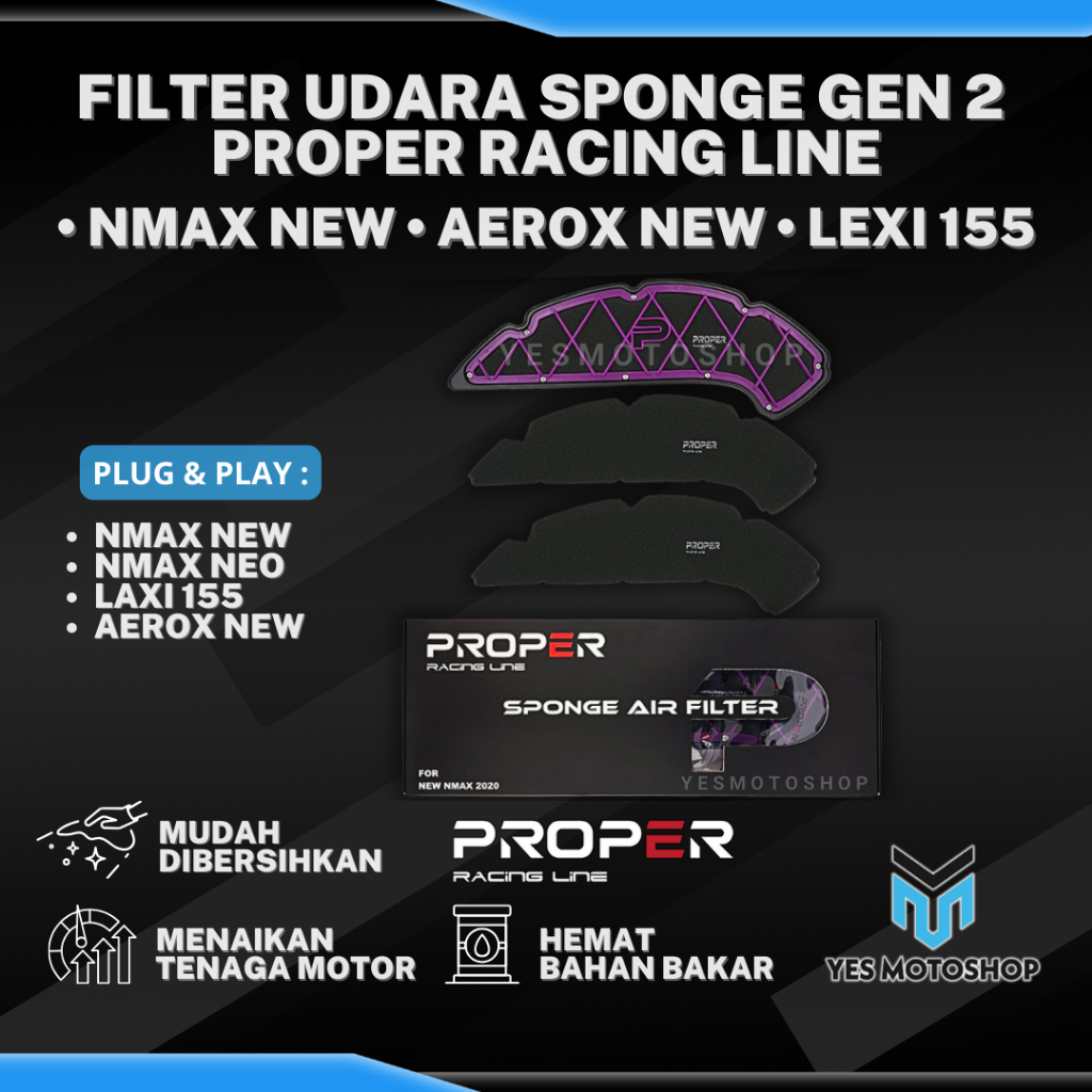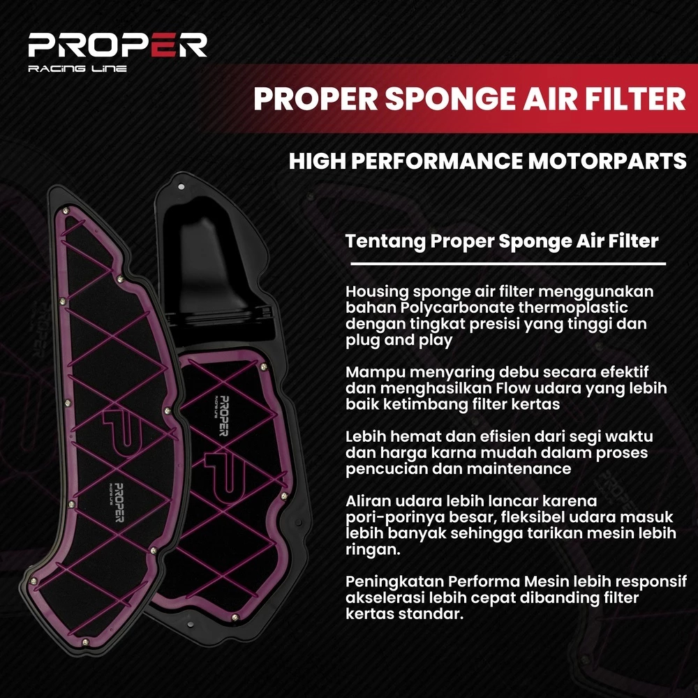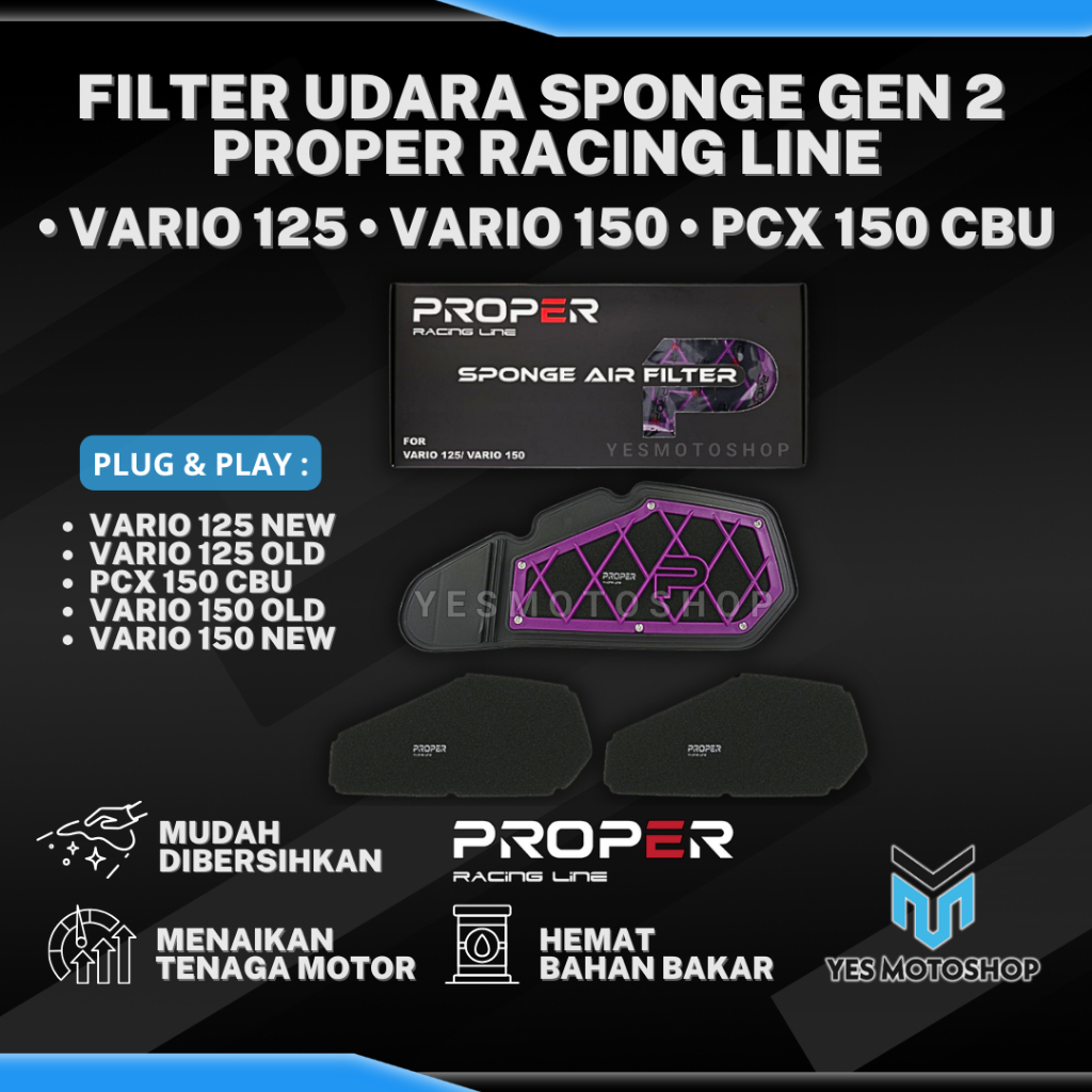 FILTER UDARA PROPER RACING LINE GEN 2 VARIO 125 VARIO 150 BEAT FI SCOOPY FI GENIO NMAX AEROX PCX ADV