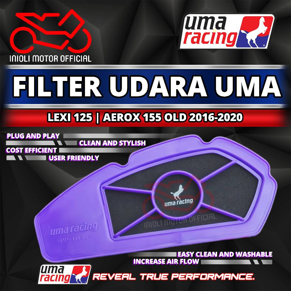 FILTER UDARA UMA RACING LEXI 125 OLD AEROX 155 OLD NVX 155 B65 V1 GEN 1 2016 2017 2018 2019 2020 HYBRID AIR FILTER KIT UMA RACING FILTER UDARA RACING FILTER HAWA SARINGAN UDARA MOTOR UMA RACING