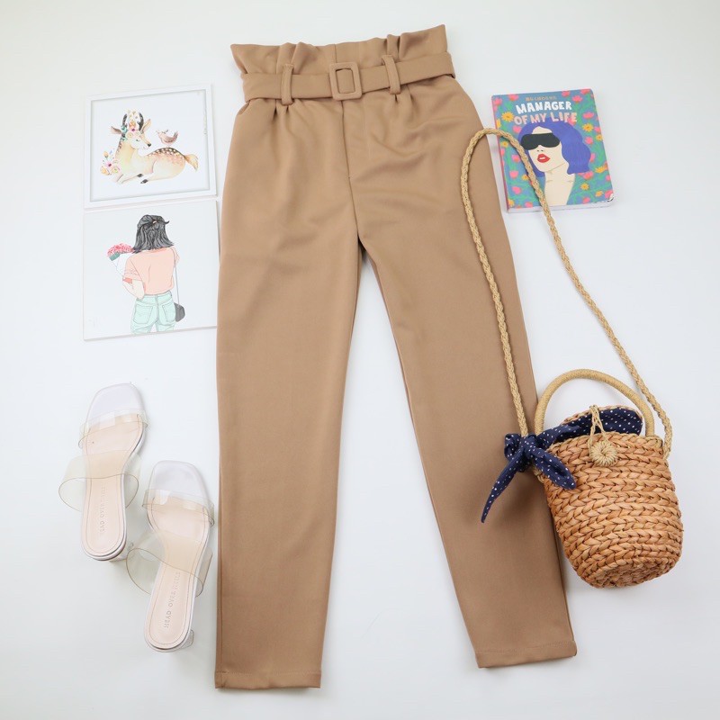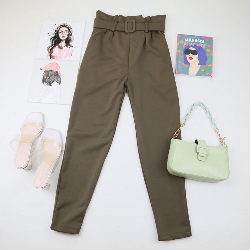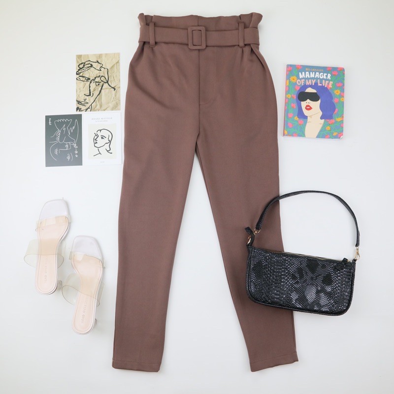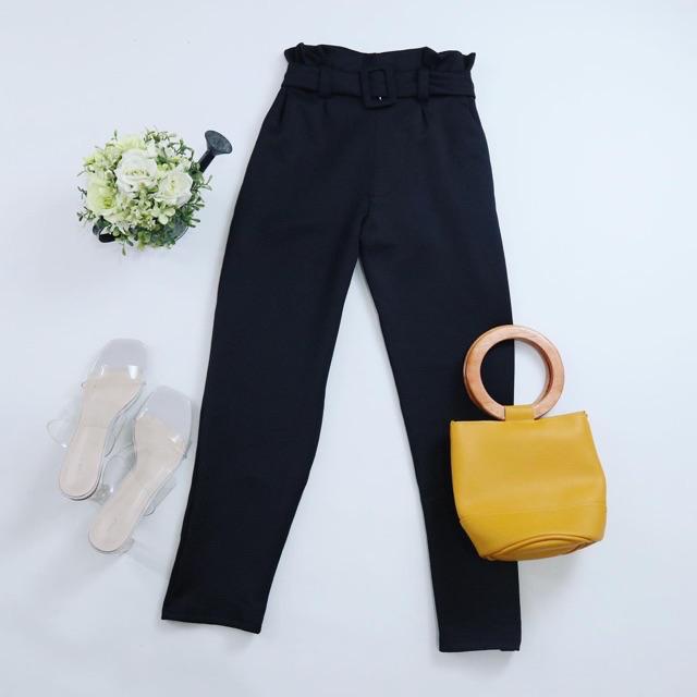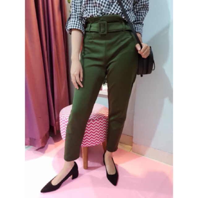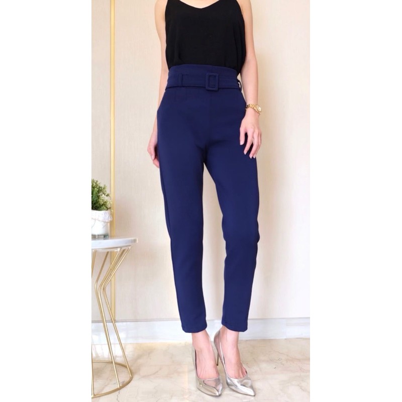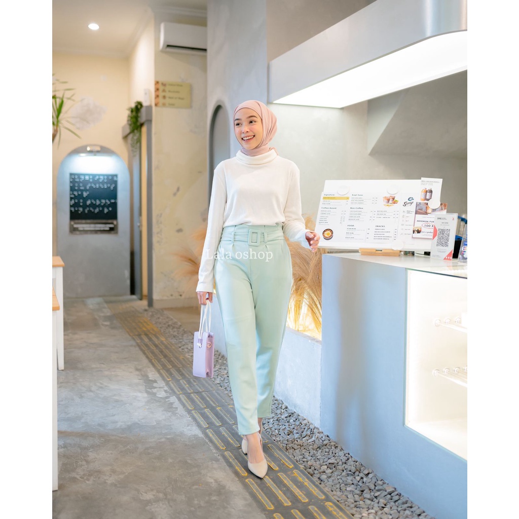 Millea Ring Belt Pants ( Tebal stretch BEST SELLER ) Celana Kantor Wanita | celana belt highwaist | cekana anti buncit