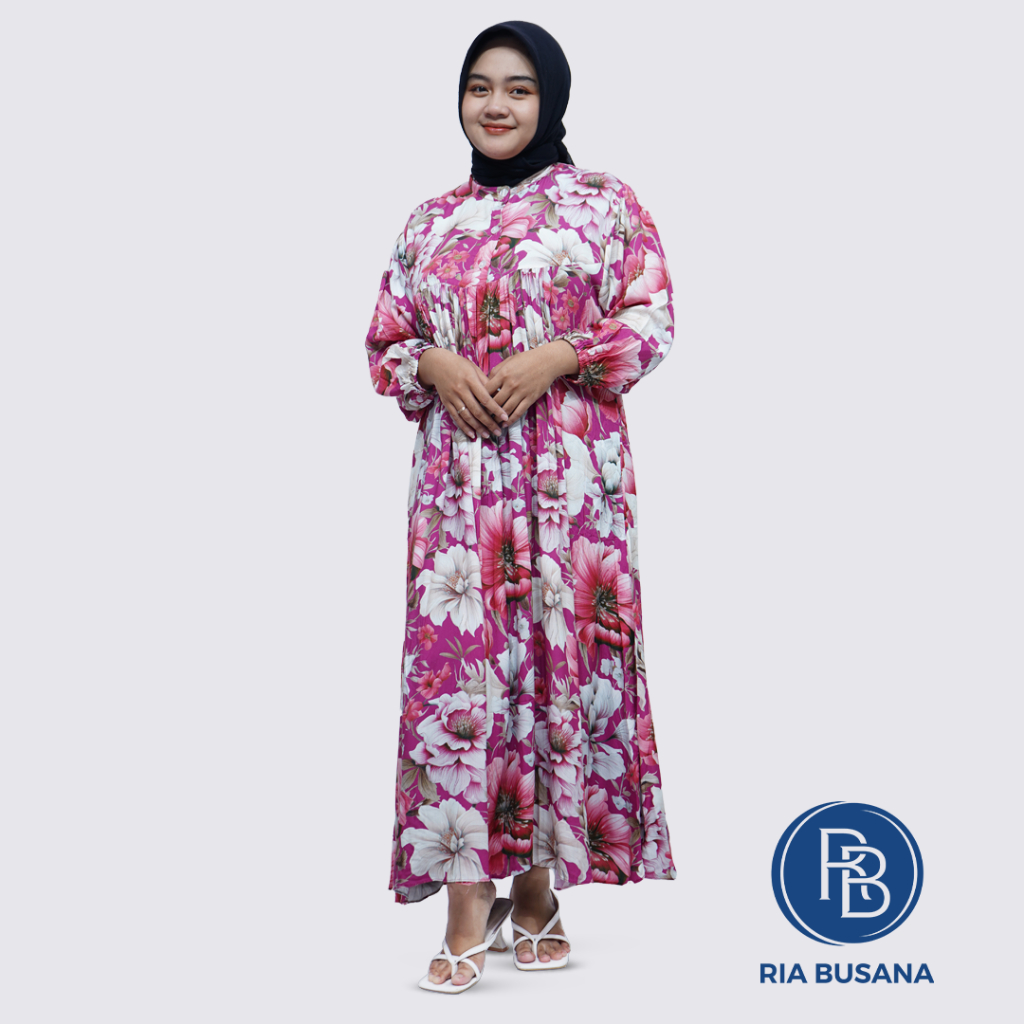 Ria Busana - Fatma Mode - Daster Dewasa Wanita Rayon Long Dress Motif Bunga Cantik Art. 104
