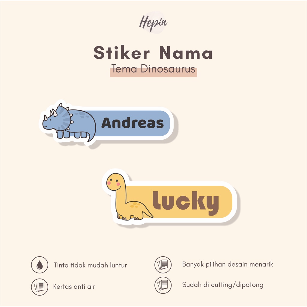(90 - 120 pcs) Stiker Cutting nama DINOSAURUS/ Stiker Nama Anak Murah / Label Nama Custom