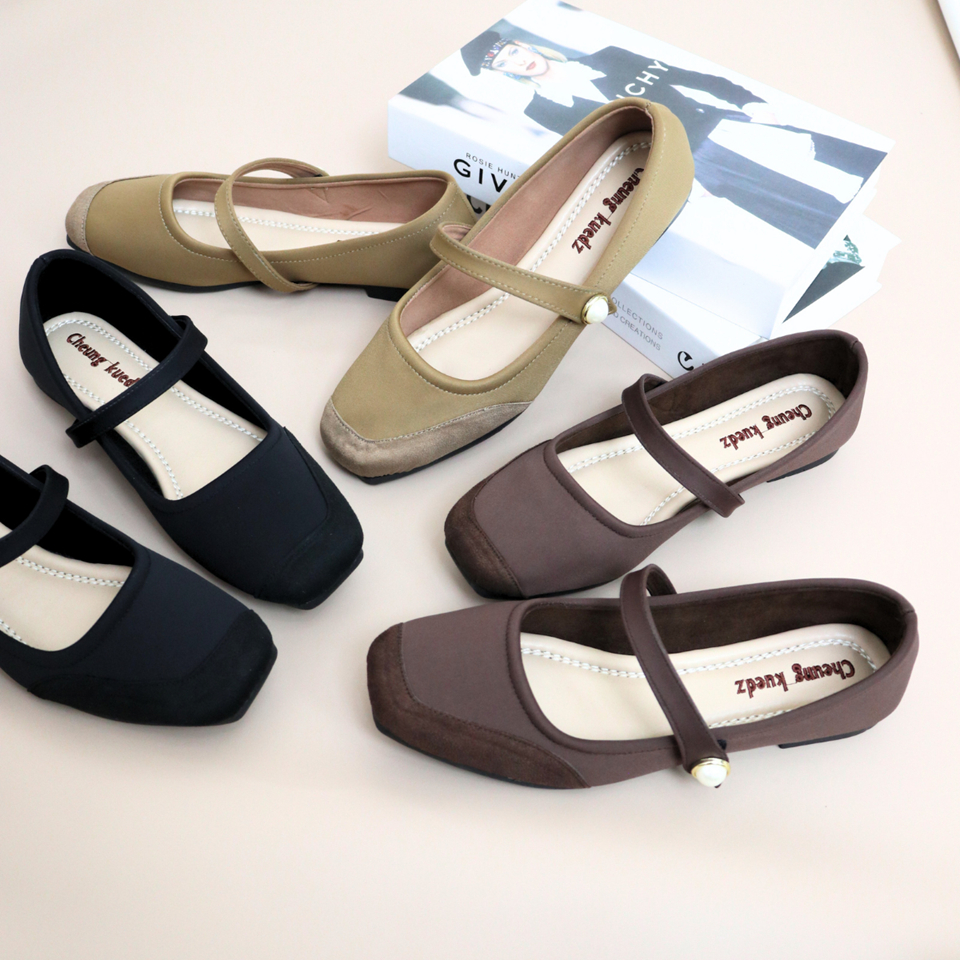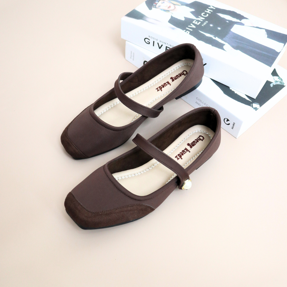 Cheung Kuedz Sadiya Flat Shoes Modern Wanita Berbahan Satin dan Suede
