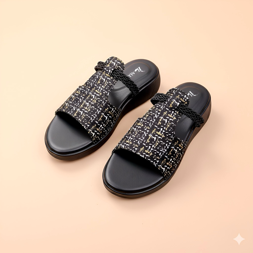 Aluna WANDA Sandal Slop Wanita Wedges Premium 3cm Elegan Simpel Kekinian Empuk Flat Pesta Casual Ori