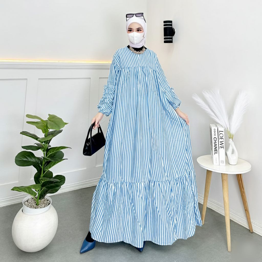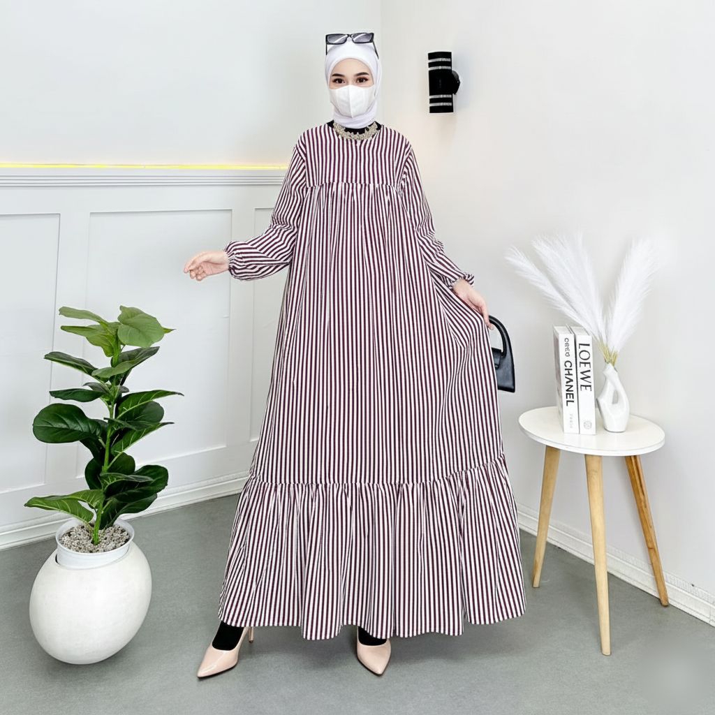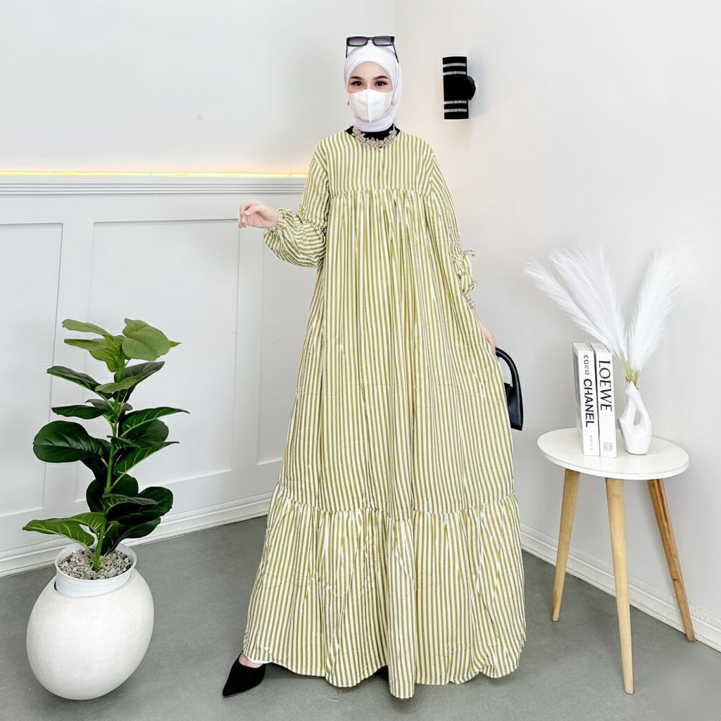 Gamis Garis Aesthetic - Homedress Lucu - Aesthetic - Pastel