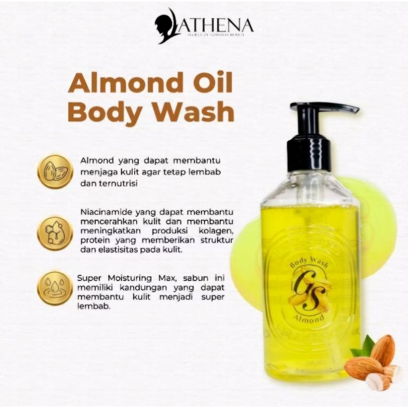 GODDESSKIN ATHENA ALMOND OIL BODY WASH 250ml ORI Sabun Mandi Badan Tubuh Niacinemide