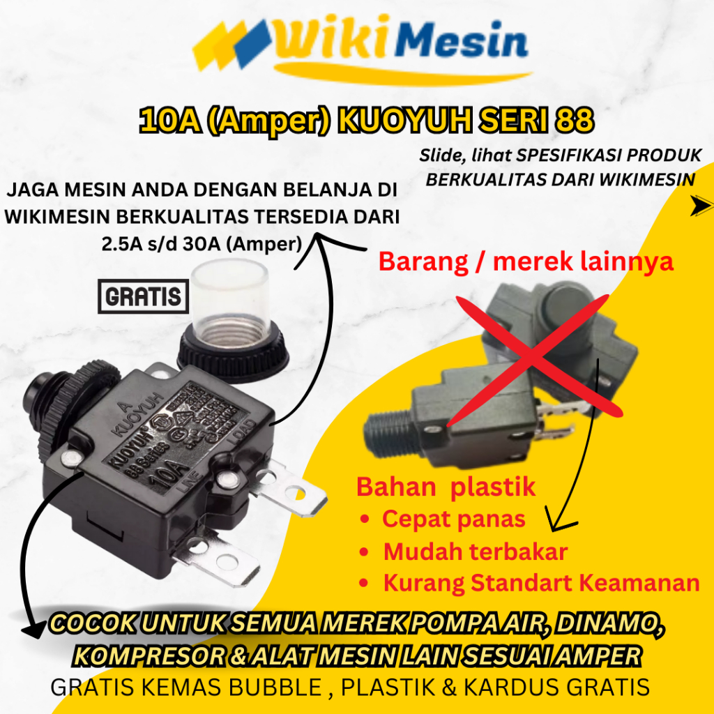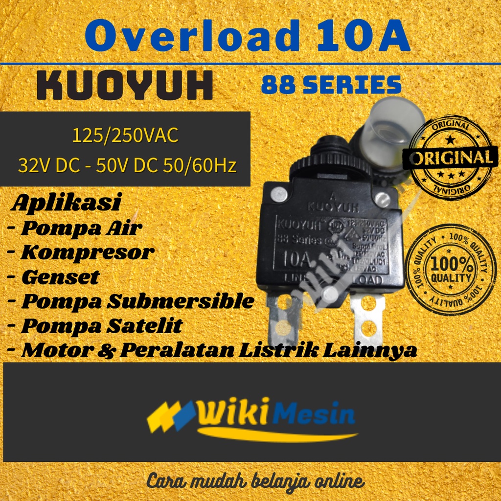 Kuoyuh Thermal Overload Protector 10A - Reset Switch Genset Pompa Submersible Kompresor Listrik Ori