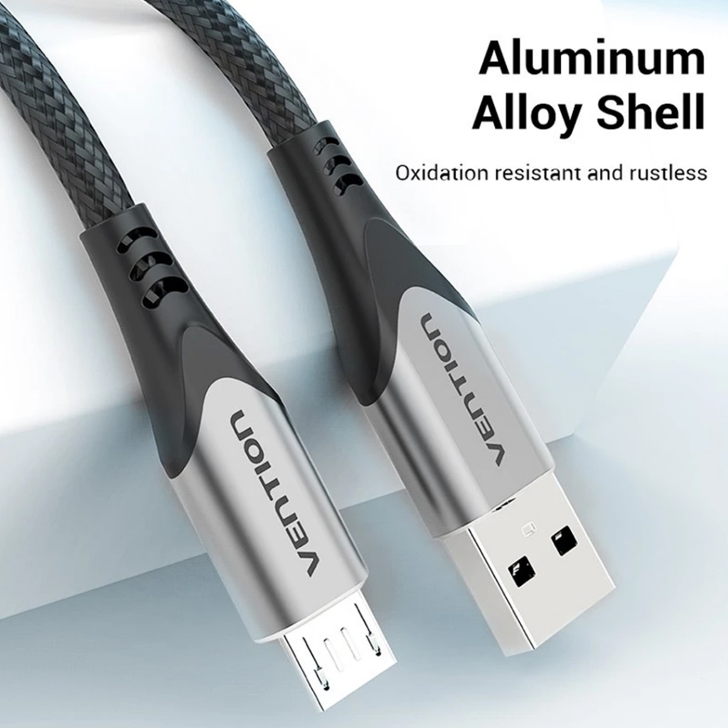 Vention Kabel Data Charger Micro USB 3A 60W Fast Charging Quick Charge 2A Braided Nylon PVC 1 Meter / 2 Meter Universal Cable Charger Android Oppo Vivo Infinix