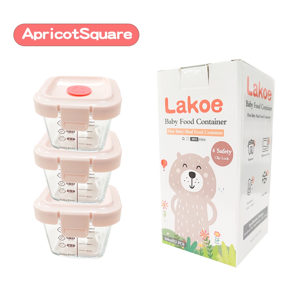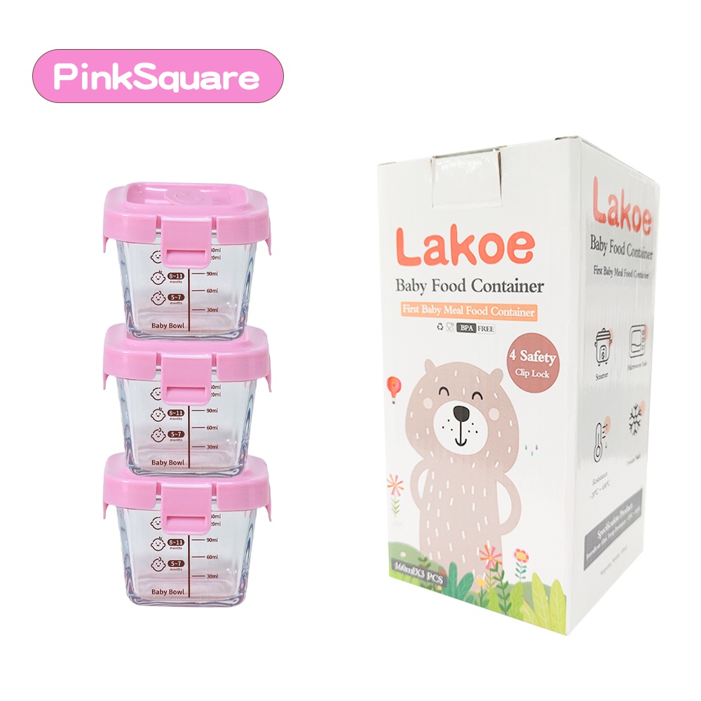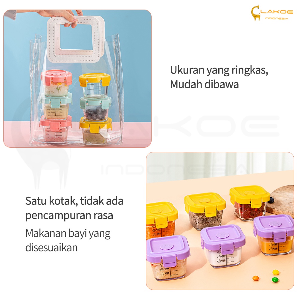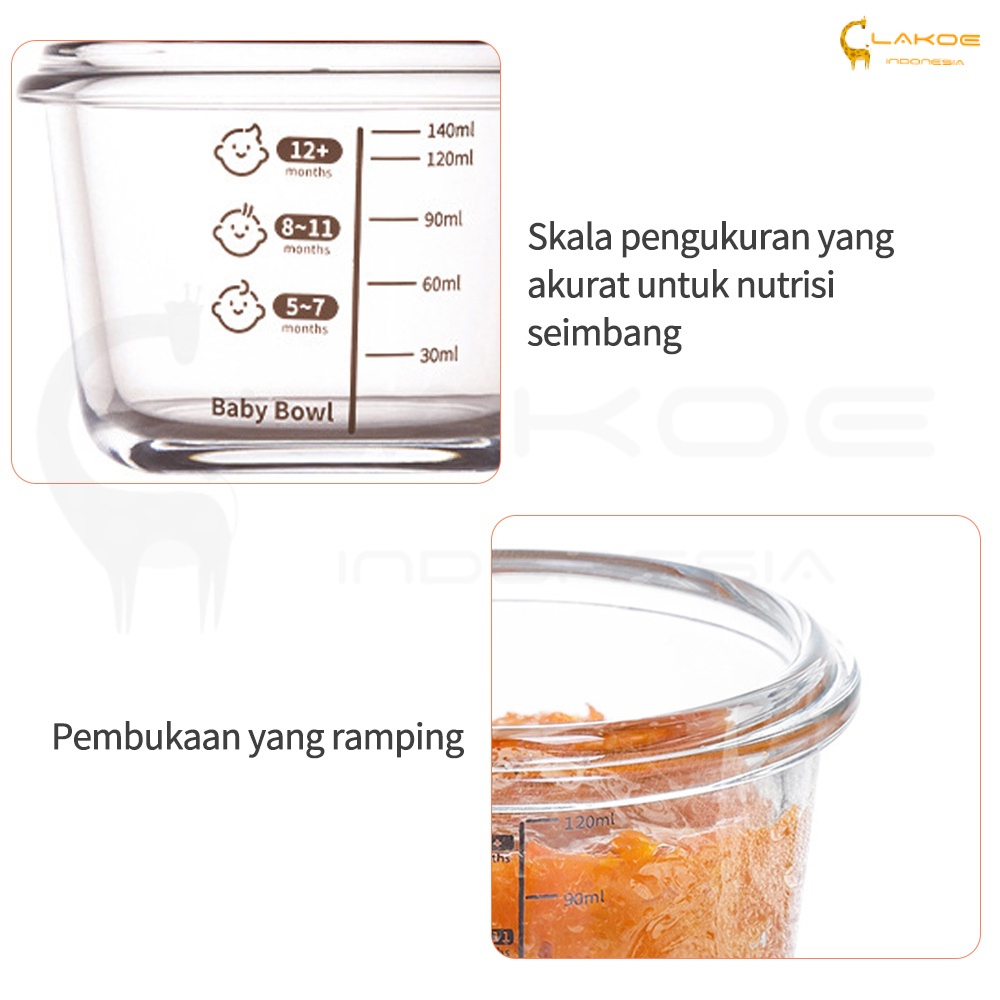 LAKOE 3pcs/set Wadah Mpasi Kaca/Food Container Mpasi Kaca/Tempat Makan Bayi