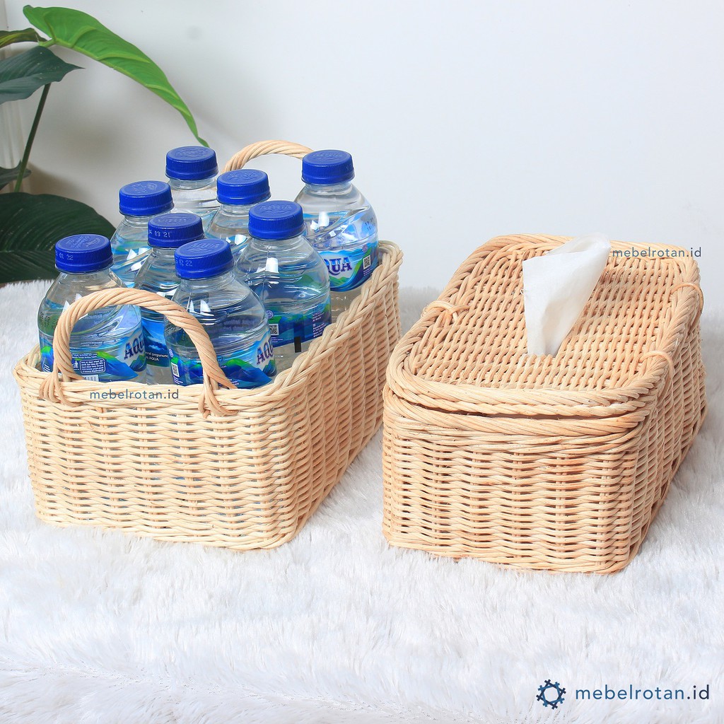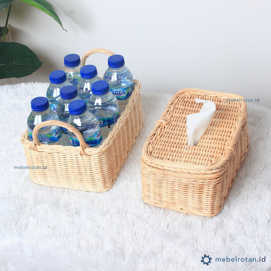 Tempat Tissue Rotan - Kotak Box Tisu Wajah Persegi Panjang