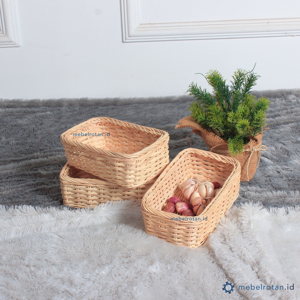 Tempat Keranjang Bawang Bumbu Dapur Rotan - Keranjang Sebaguna