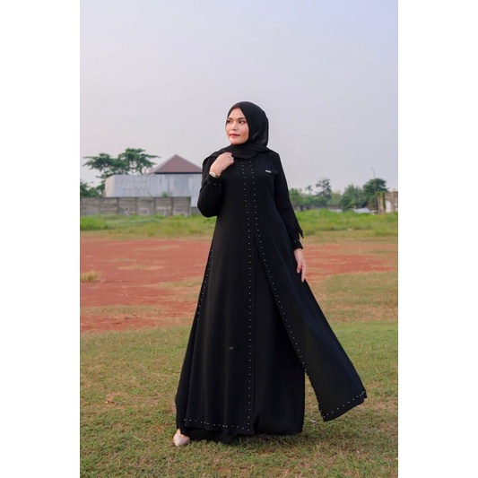 dress Zara | gamis hitam mewah | abaya hitam Zara | pakaian muslim wanita