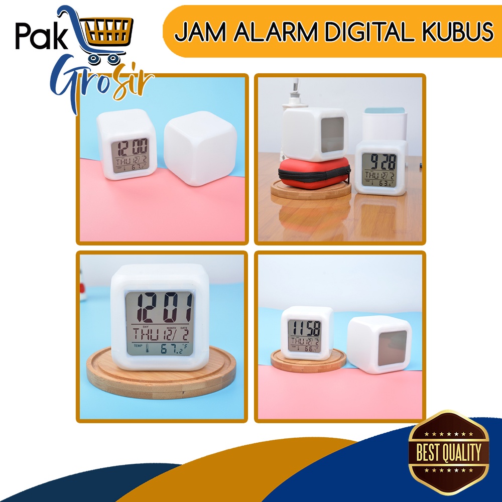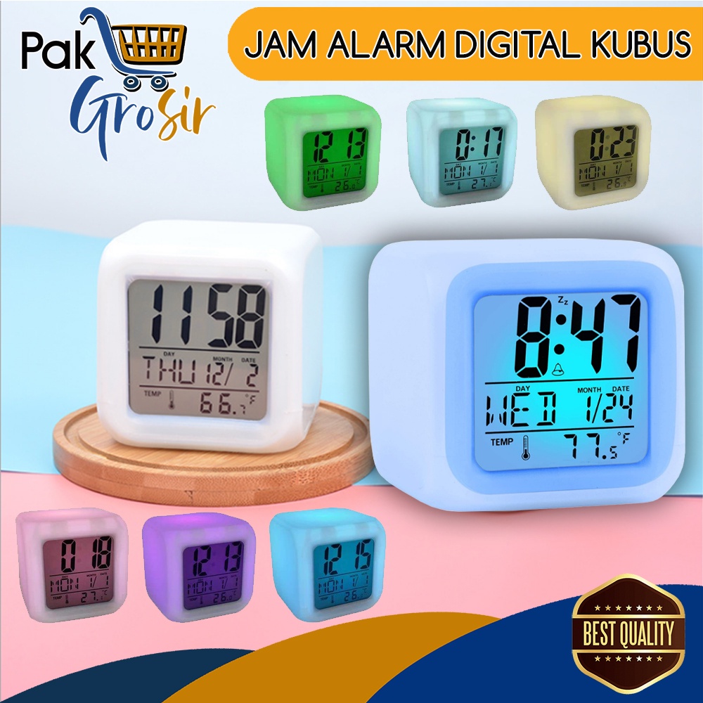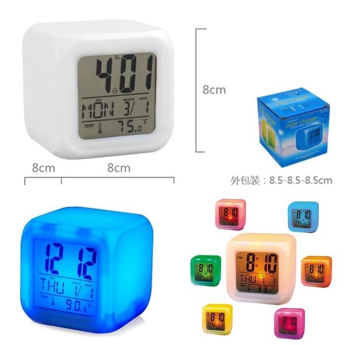 Jam Digital LED Meja Kubus Digital Alarm Berubah 7 warna Moody Clock Glowing Lampu Tidur
