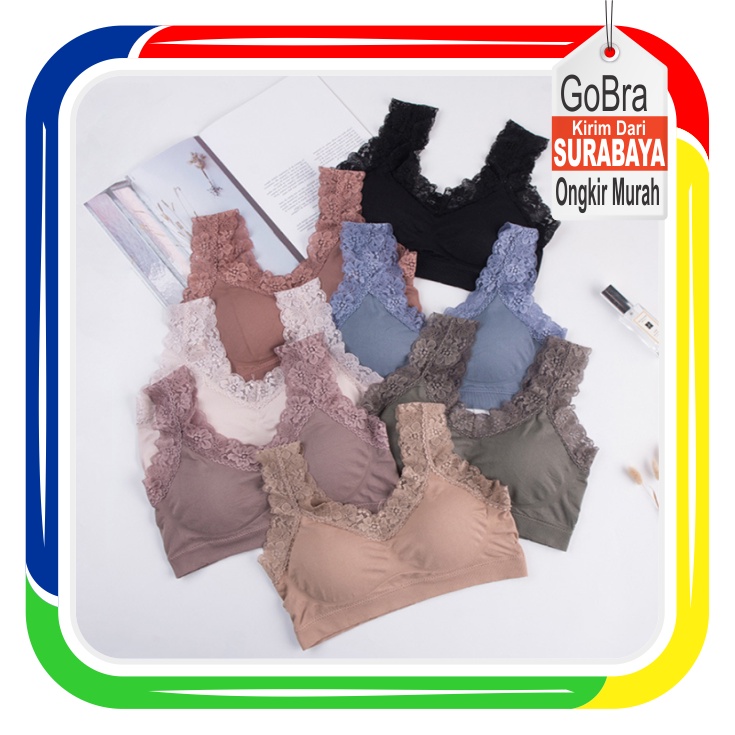 Gobra ♕ PW096 Bra Wanita Nyaman Tali Renda Pakaian Dalam BH Fashion Korea Lembut Import COD