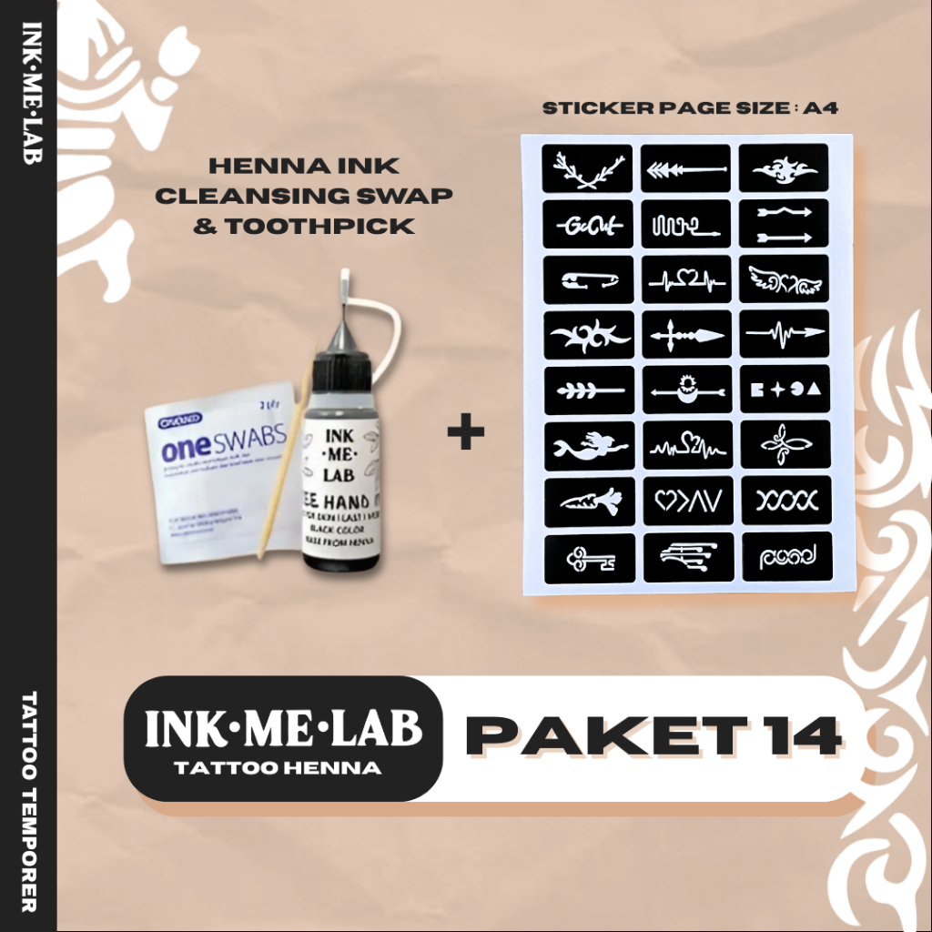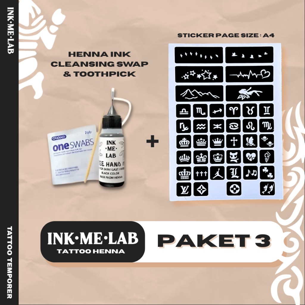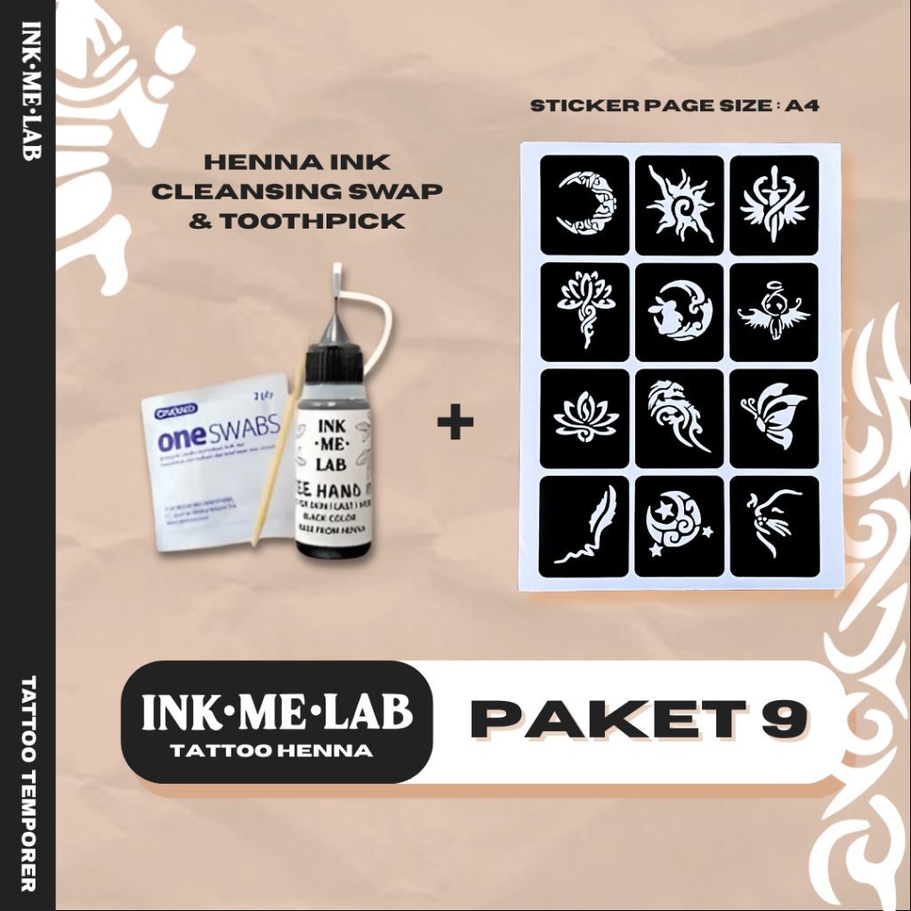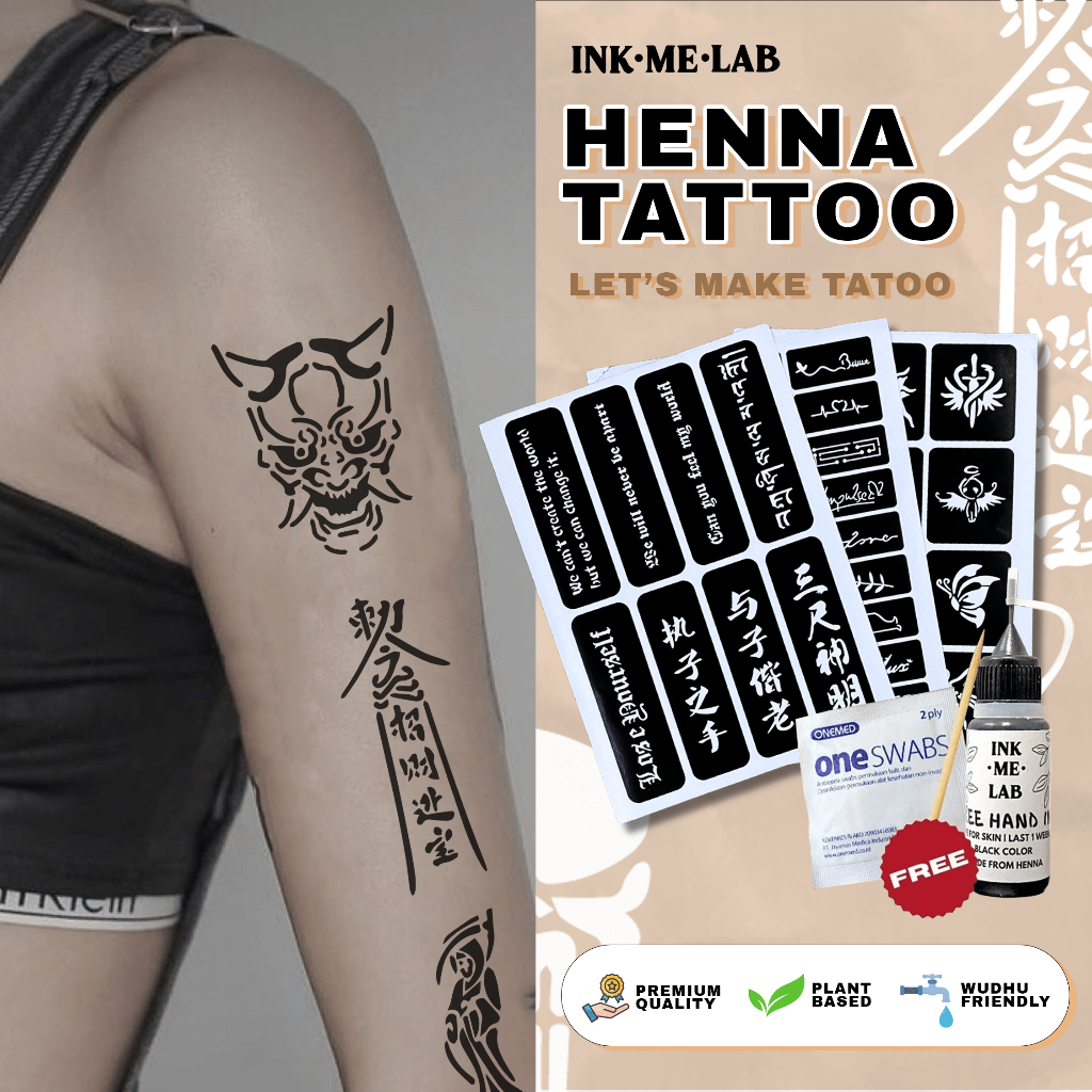 Henna/Jagua Ink Tattoo Kit - Tato Halal Sticker Template Temporary Tattoo Sah Wudhu