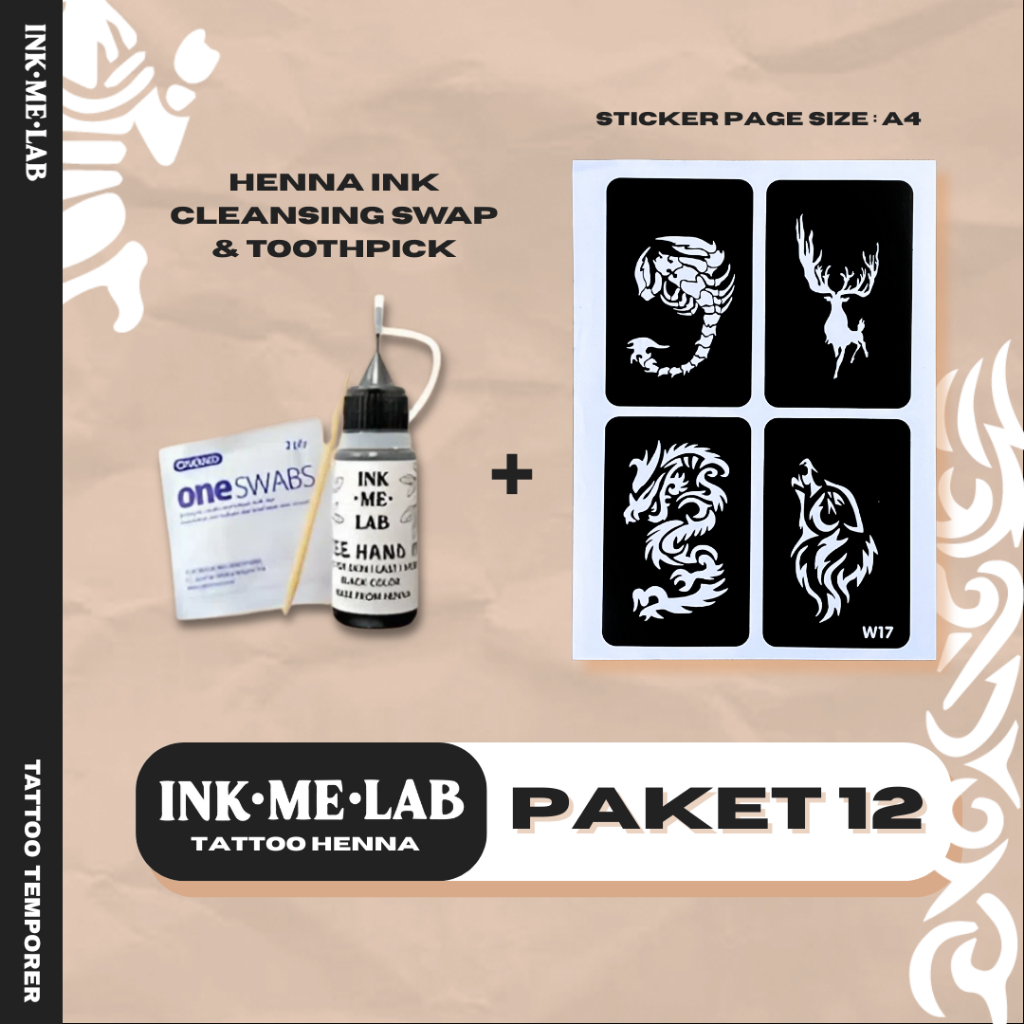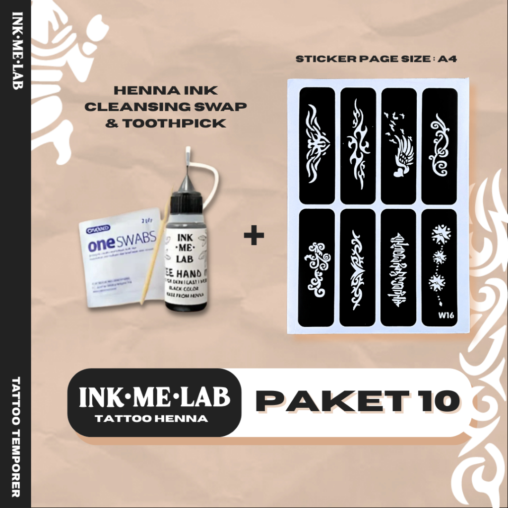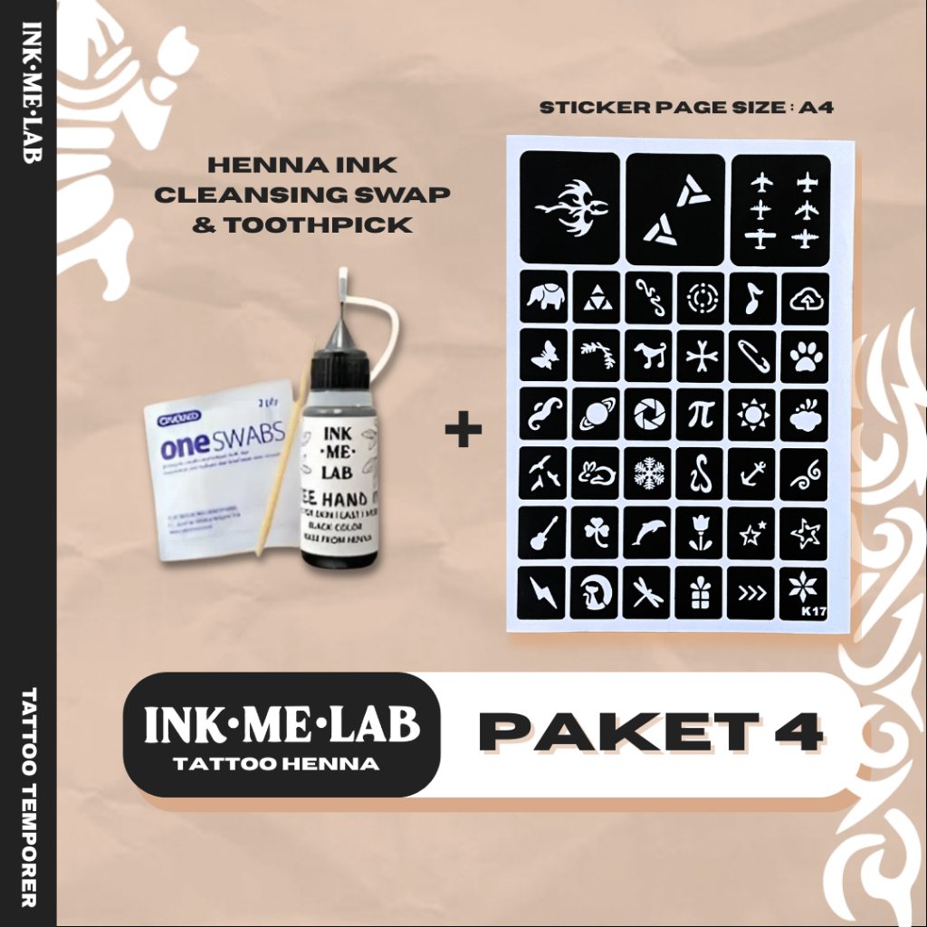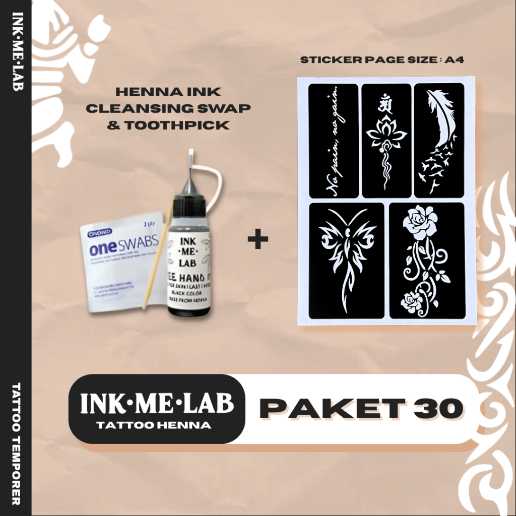 Henna/Jagua Ink Tattoo Kit - Tato Halal Sticker Template Temporary Tattoo Sah Wudhu
