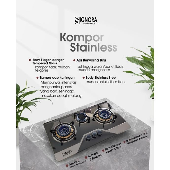 Signora Kompor Gas Tanam 3 Tungku Burner New Grande Stainless Signora