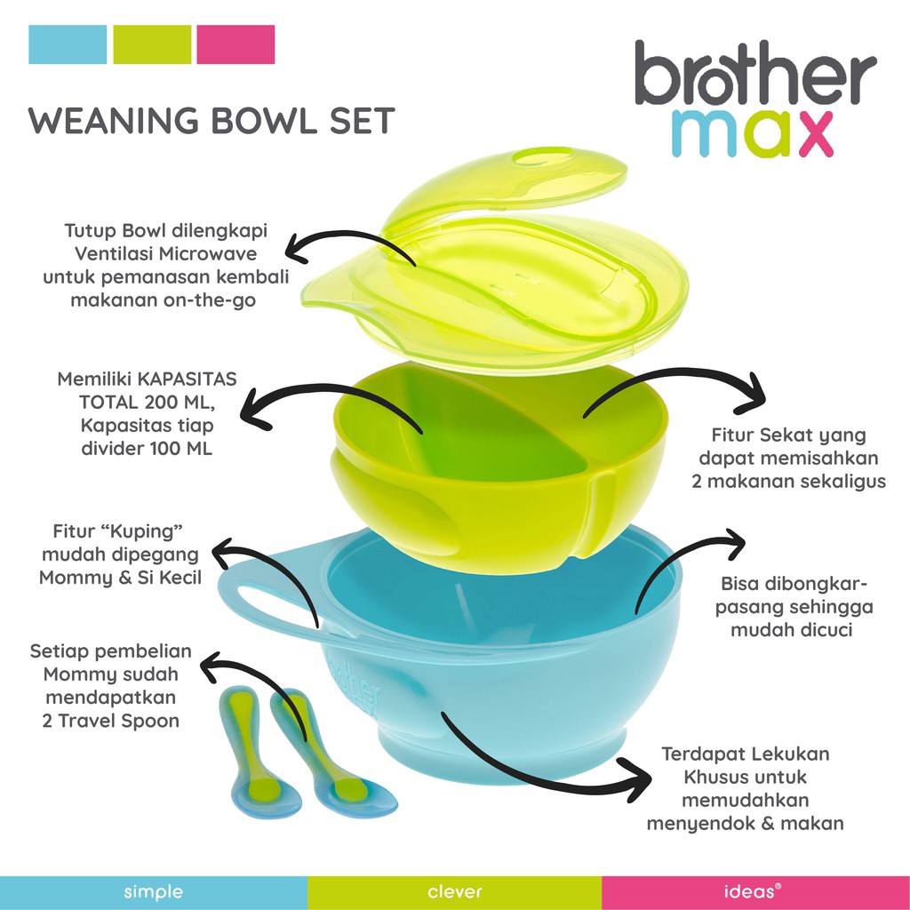 [FREE 2PCS SPOON] Brother Max Weaning Bowl Set – Mangkuk Bayi MPASI PP Traveling Dengan Sekat | BPA FREE