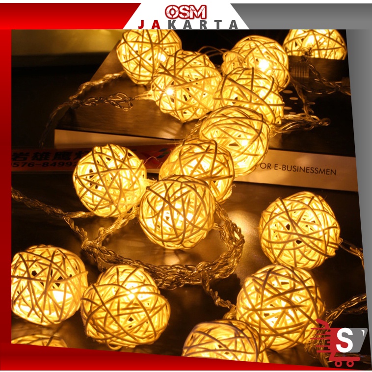 OSM JKT L5683 Lampu Hias Dekorasi Bola Rotan / String Fairy Lampu Tumbler Bulat Kamar 2 Meter