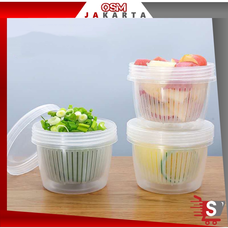 OSM JKT H5621 Toples Tiris / Toples Bulat Transparan + Saringan Penyimpanan Tiris Sayur Serbaguna / Toples Tiris Bulat
