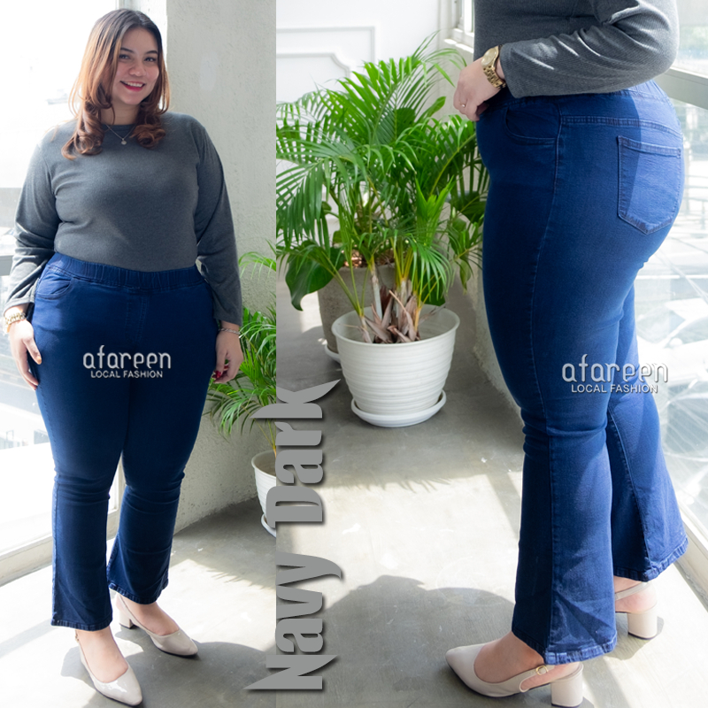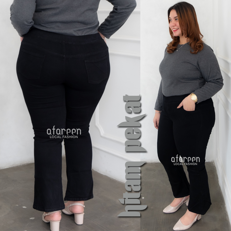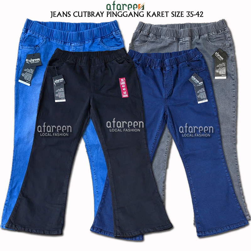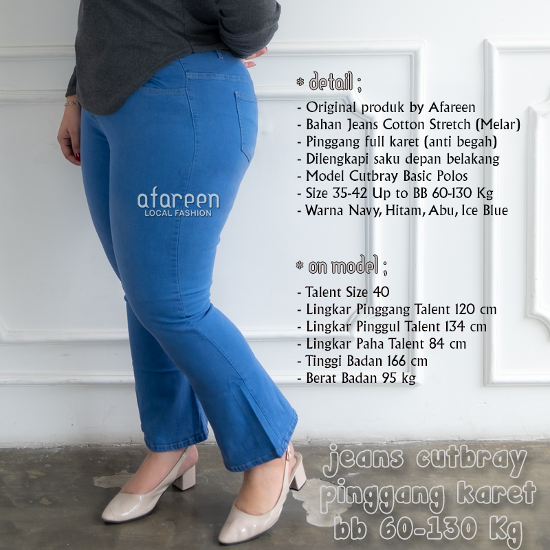 AFAREEN - Jeans Cutbray Polos Big Size Celana Jeans Cutbray Wanita Jumbo Size 35-42