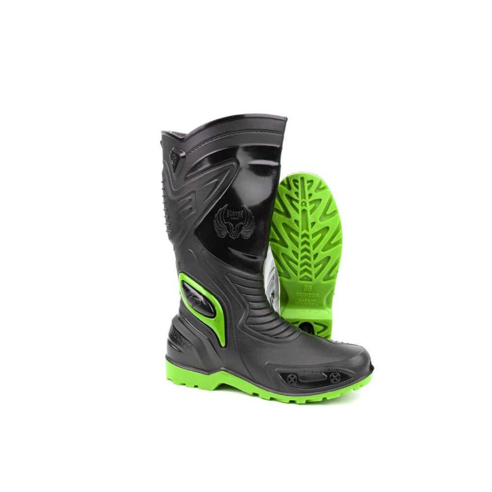 Sepatu Boot Tinggi HUNTER GP 1 Hitam Hijau Boots Karet Lokal Lentur Ringan Anti Air & Slip Touring
