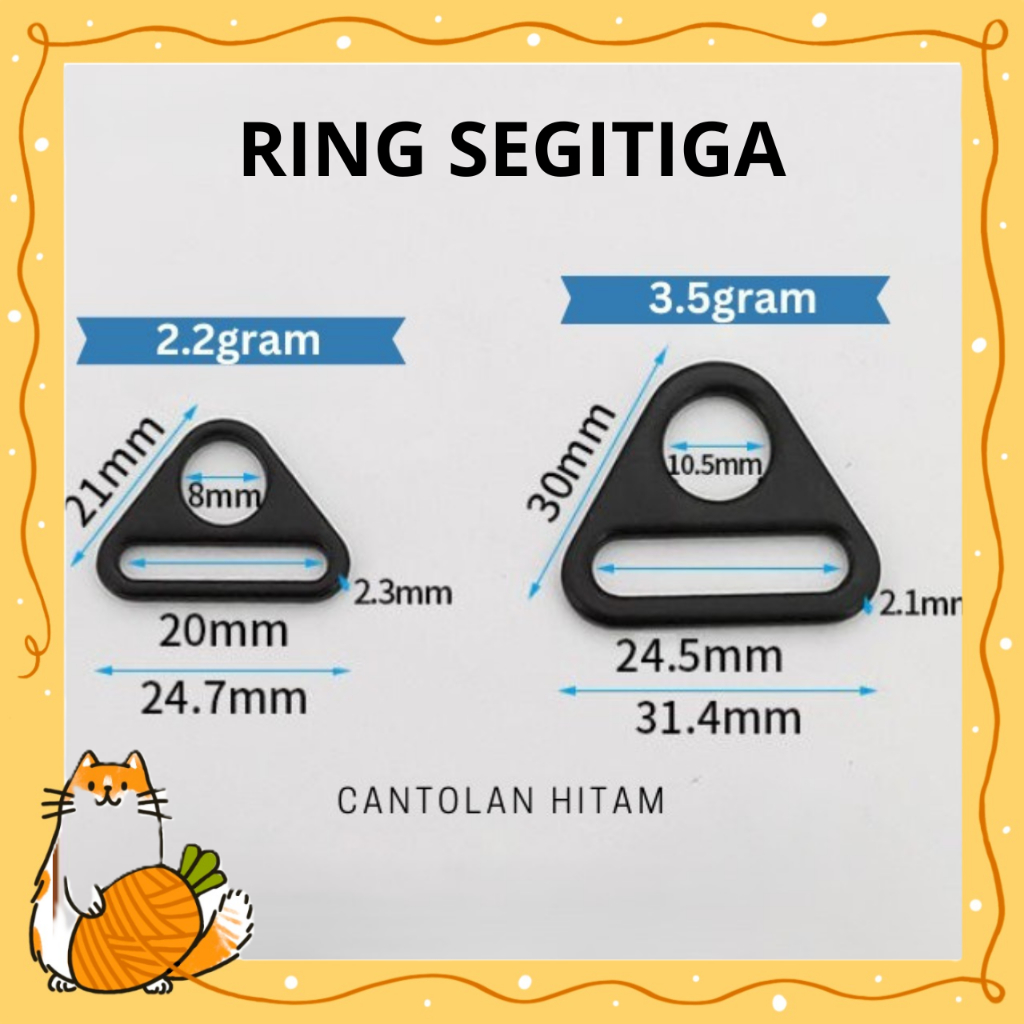 Ring Segitiga Cantolan Hitam 20mm dan 24.5mm / Aksesoris Tali Tas / Bahu Gesper / 1pcs
