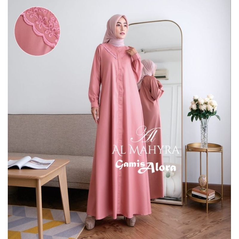 Gamis Alora Renda bahan katun toyobo fashion muslimah terbaru terlaris terpopuler
