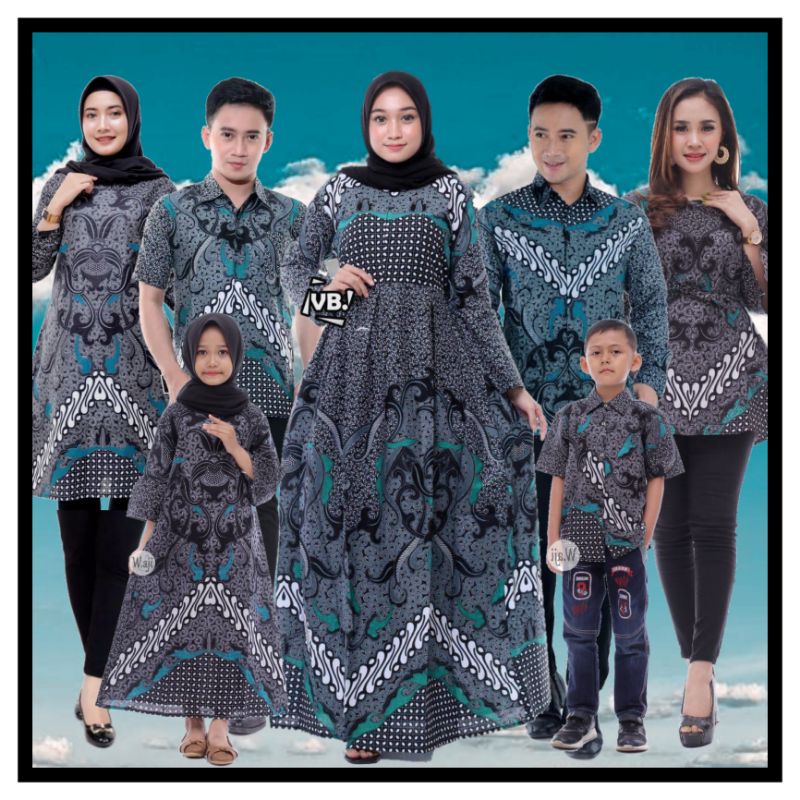 Batik Couple Keluarga Modern Sania Ruffle Ori Ndoro Jowi Dnt Motif Dimensi Abu TERMURAH