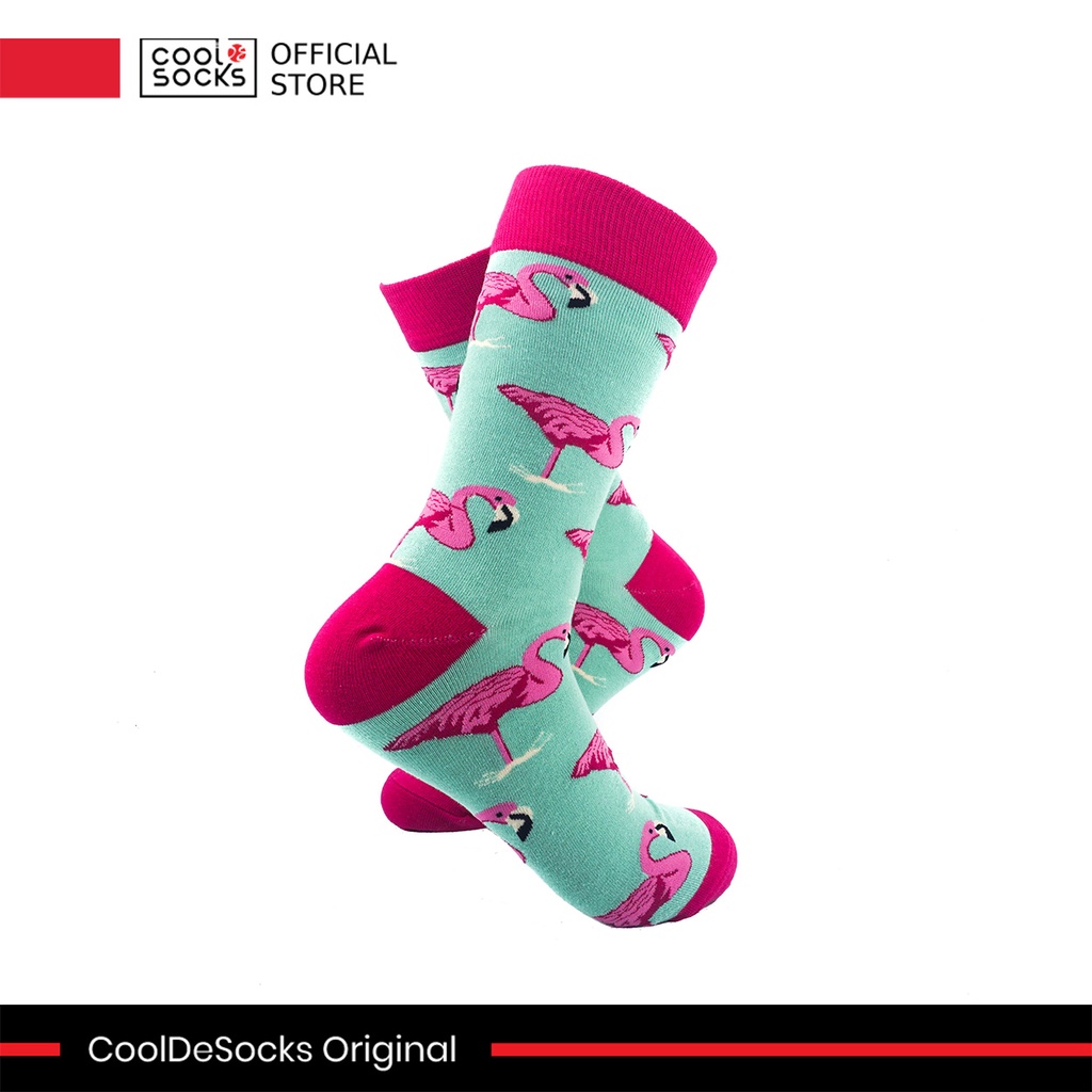 Kaos Kaki CoolDeSocks Original | Pink Flamingos Green