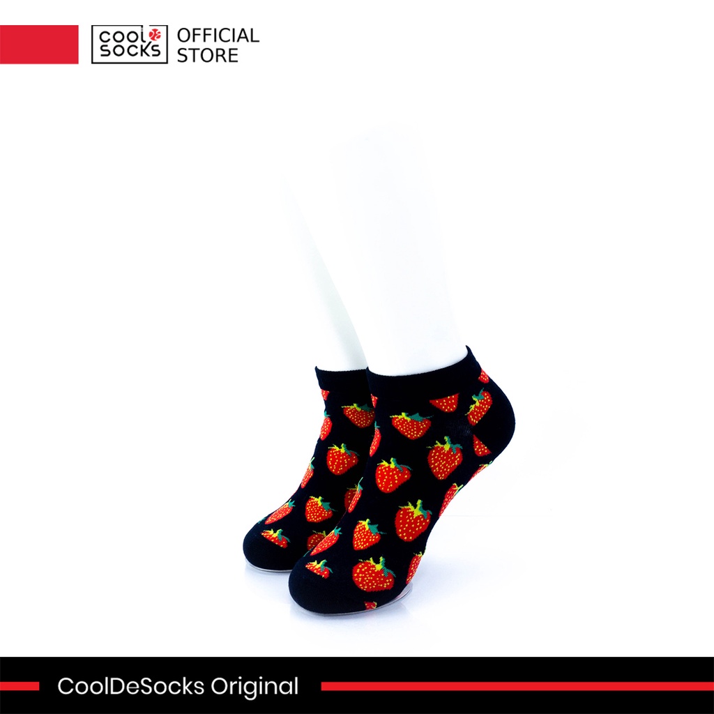 Kaos Kaki CoolDeSocks Original | Strawberries in Black (A)