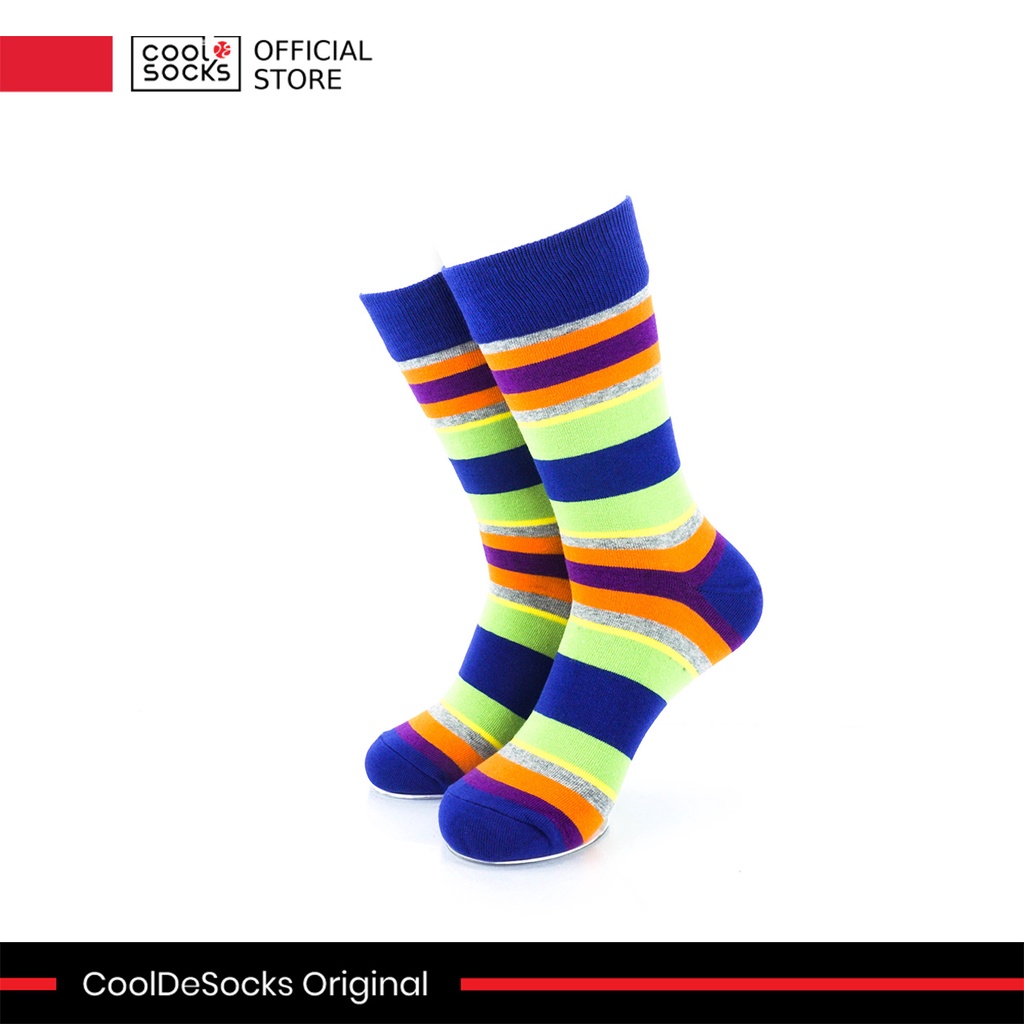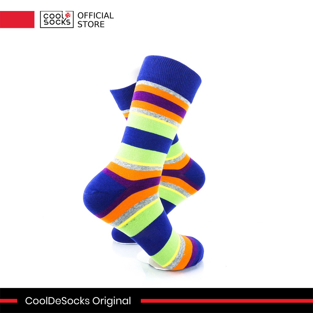 Kaos Kaki CoolDeSocks Original | Striped Vintage - Neon Blue