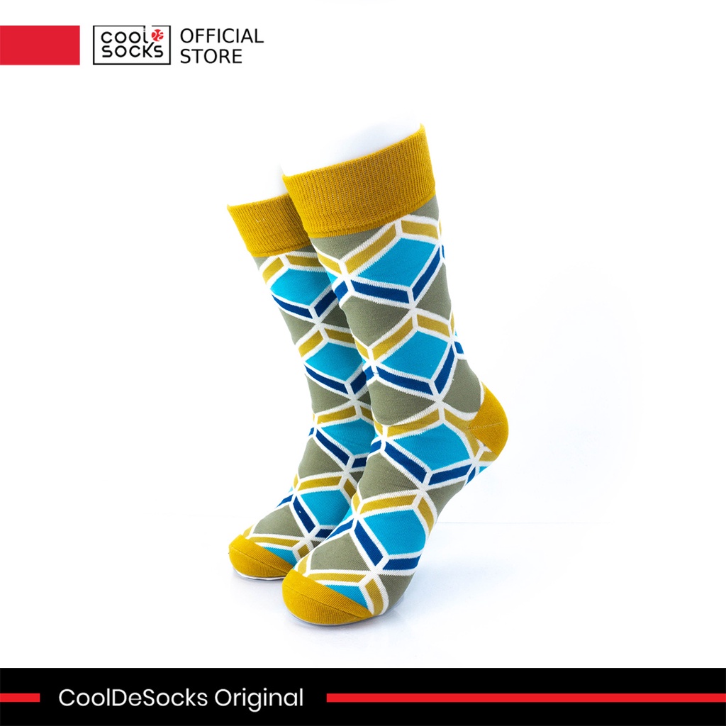 Kaos Kaki CoolDeSocks Original | Blue Gold Geometry