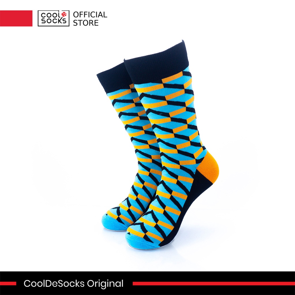 Kaos Kaki CoolDeSocks Original | 3D Cubes Blue Orange
