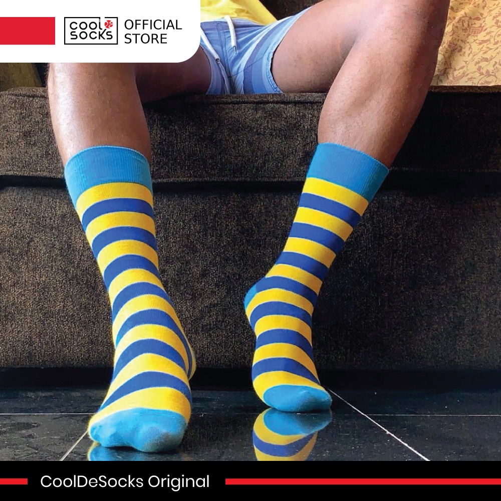 Kaos Kaki CoolDeSocks Original | Striped (Blue Yellow)