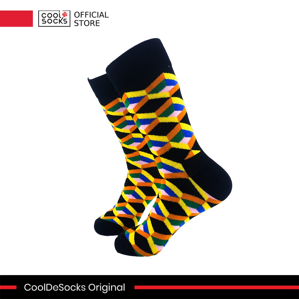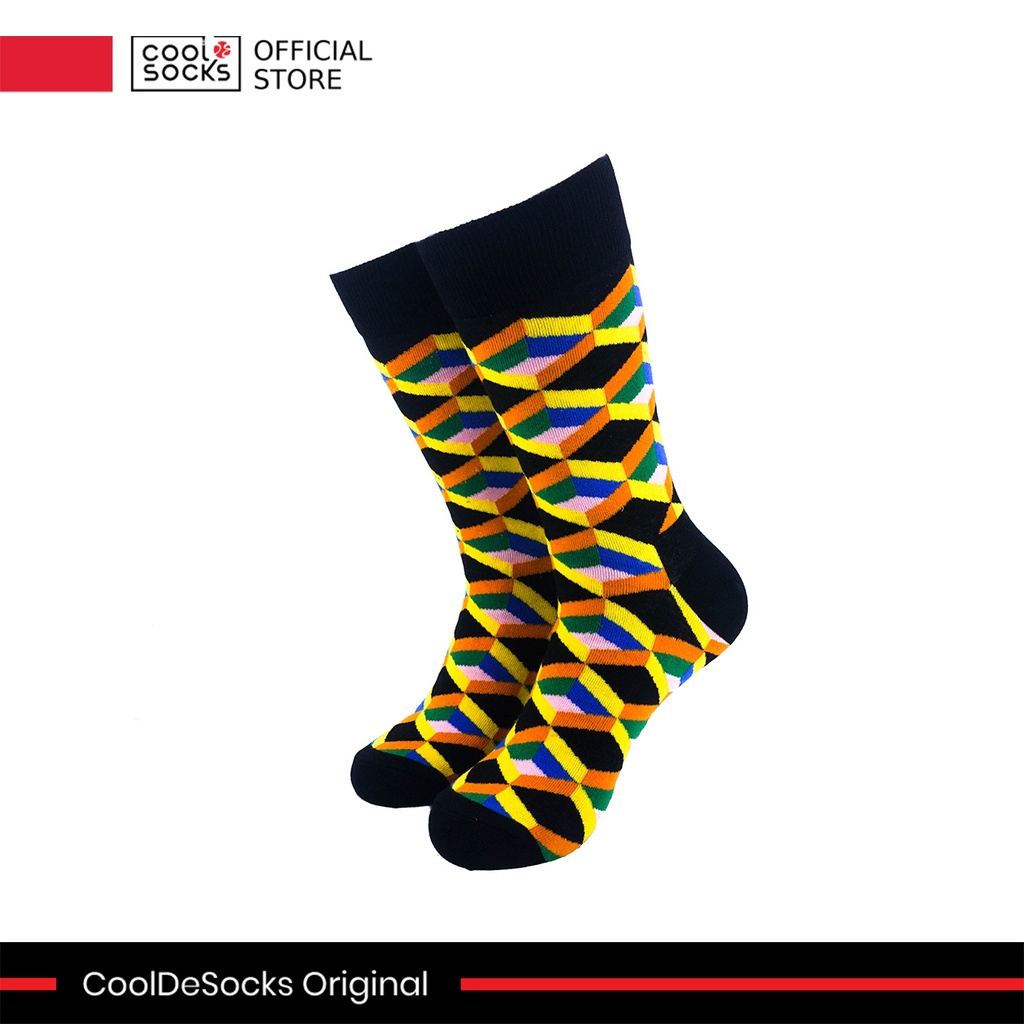 Kaos Kaki CoolDeSocks Original | 3D Cubes Colorful Orange