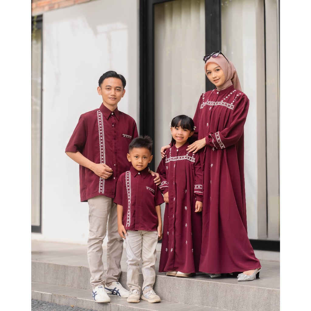 SARIMBIT RAYA FAMILY SET LEBARAN 2025 (BAHAN SILKY MURAKAMI ADEM ELEGAN MOTIF BORDIR)
